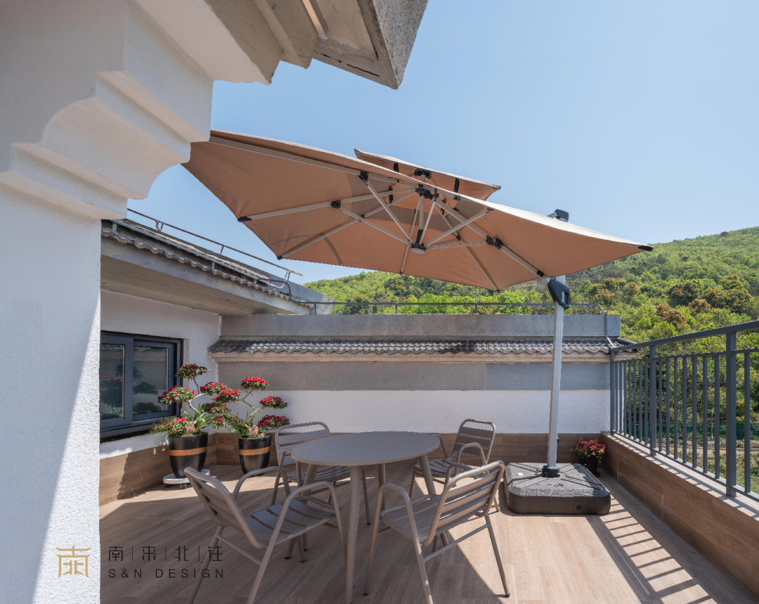 考虑到居住者年迈,楼梯功能略显不足,设计师加装电梯以便老人通往二楼。二楼的空间更加开阔,无论是在南边的露台还是在北边的阳光房,都如身在山间,与大自然无缝衔接。