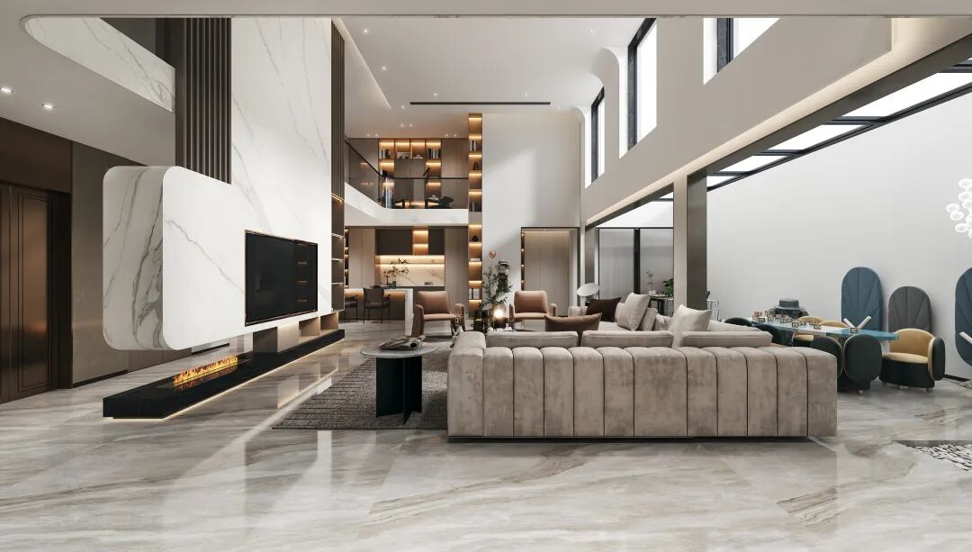 负一层空间承载着一家人的娱乐空间,精致的线条搭配着岩板更能衬托出家具的细腻品味,彰显对生活的追求。