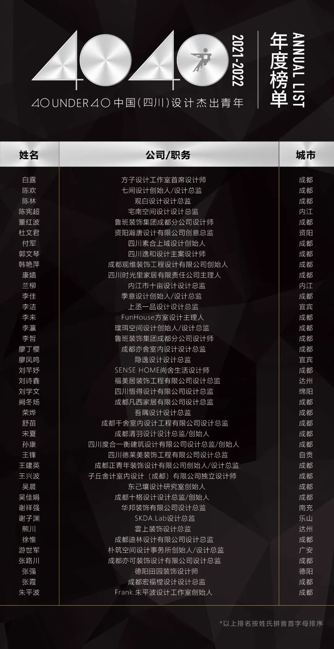 40 UNDER 40中国(四川)设计杰出青年(2021-2022)
