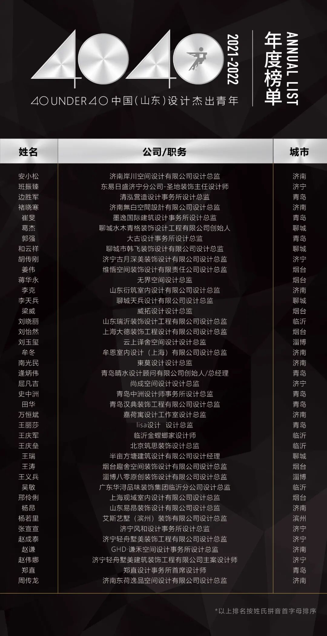 40 UNDER 40中国(山东)设计杰出青年(2021-2022)