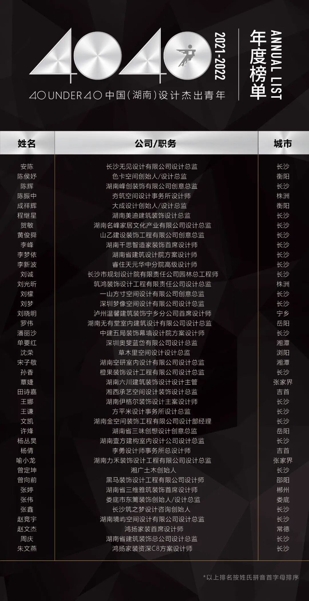 40 UNDER 40中国(湖南)设计杰出青年(2021-2022)