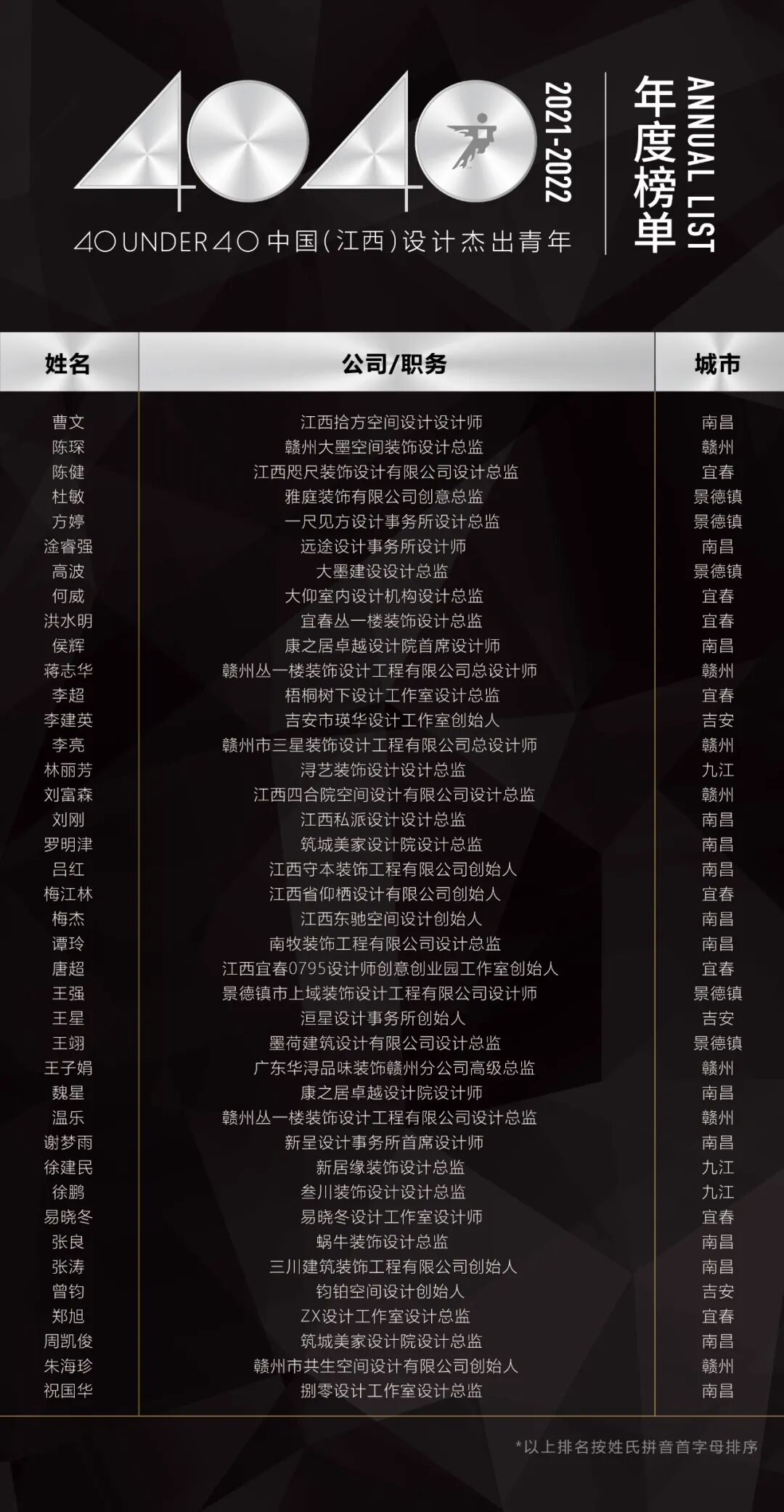 40 UNDER 40中国(江西)设计杰出青年(2021-2022)