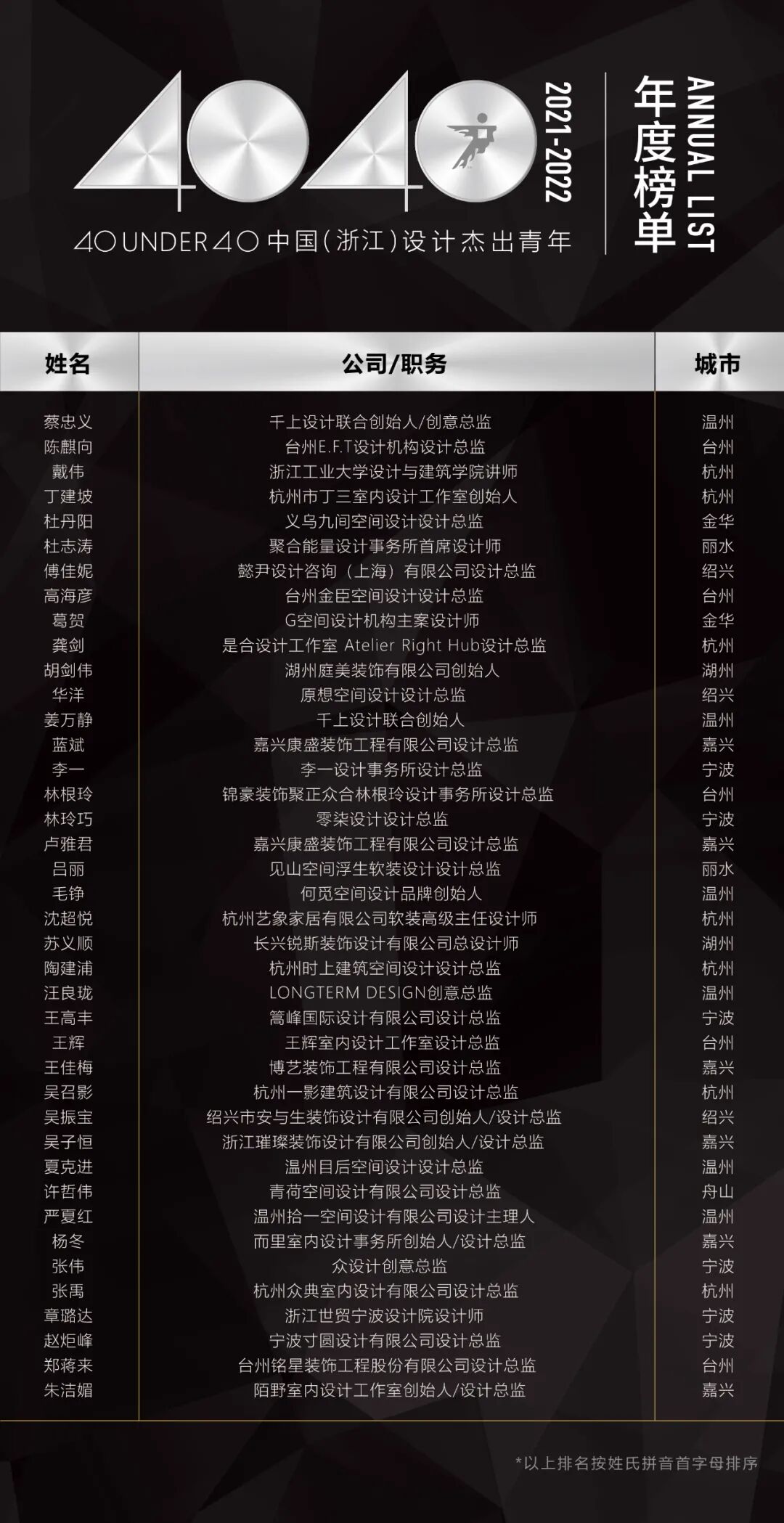 40 UNDER 40中国(浙江)设计杰出青年(2021-2022)