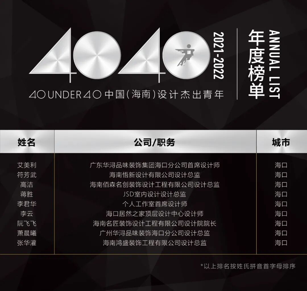 40 UNDER 40中国(海南)设计杰出青年(2021-2022)