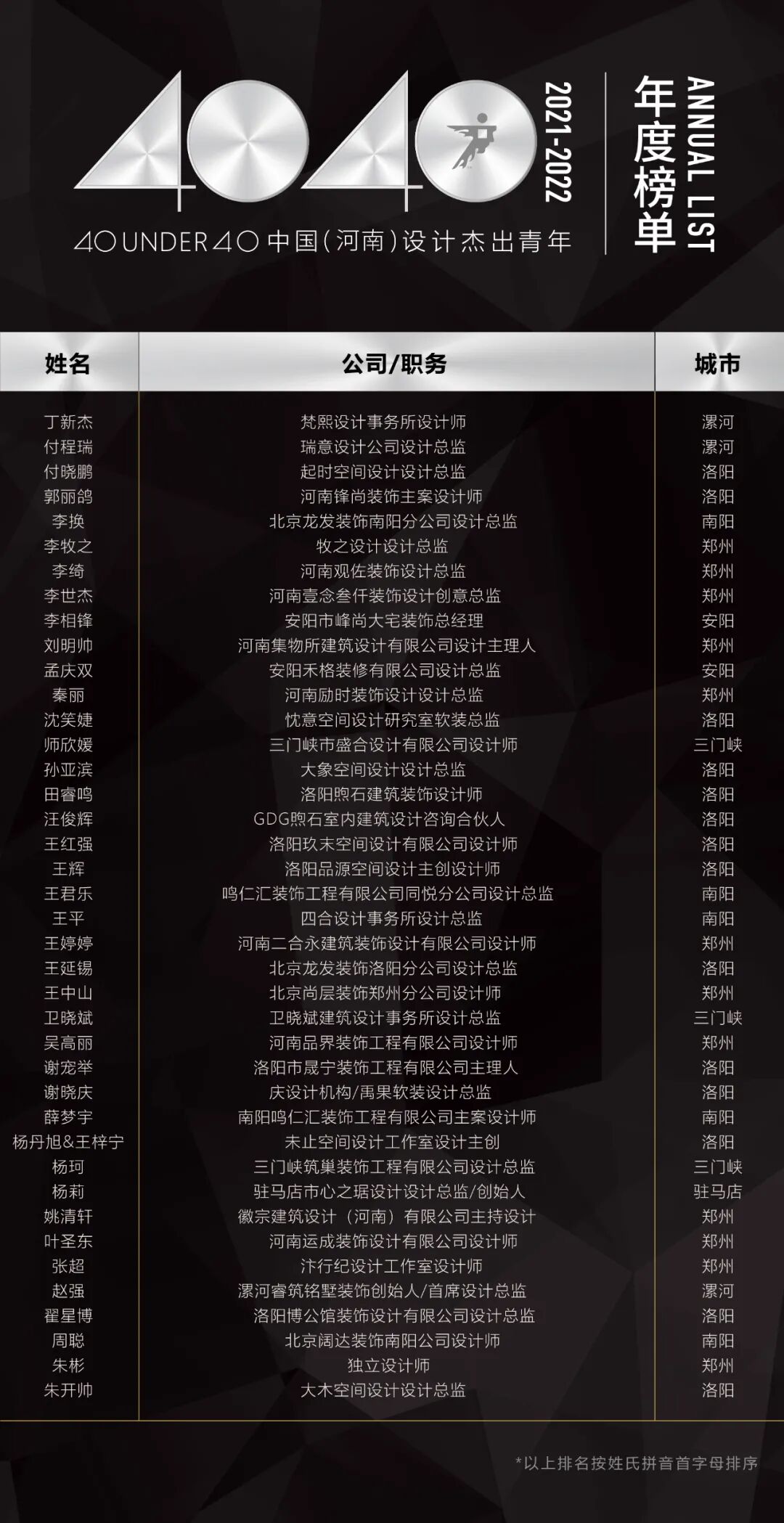 40 UNDER 40中国(河南)设计杰出青年(2021-2022)