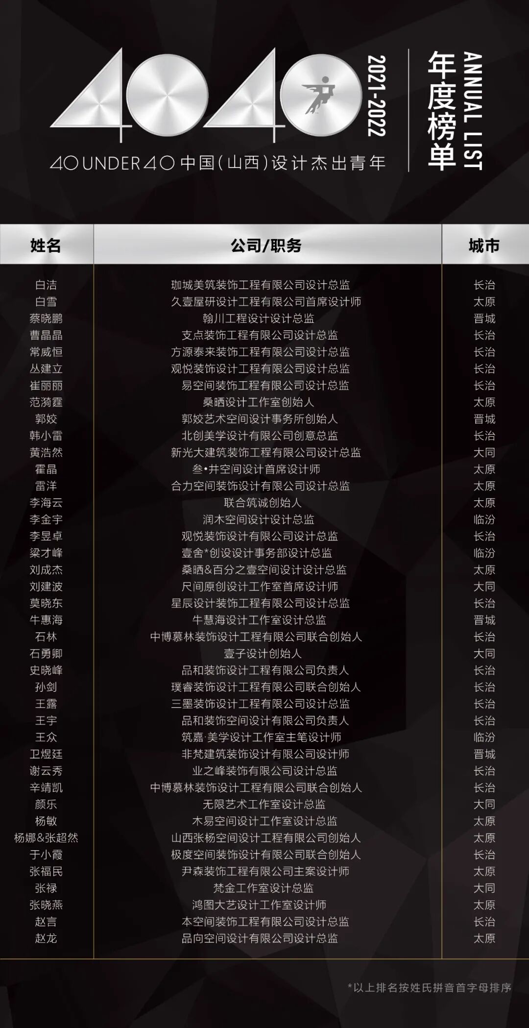 40 UNDER 40中国(山西)设计杰出青年(2021-2022)