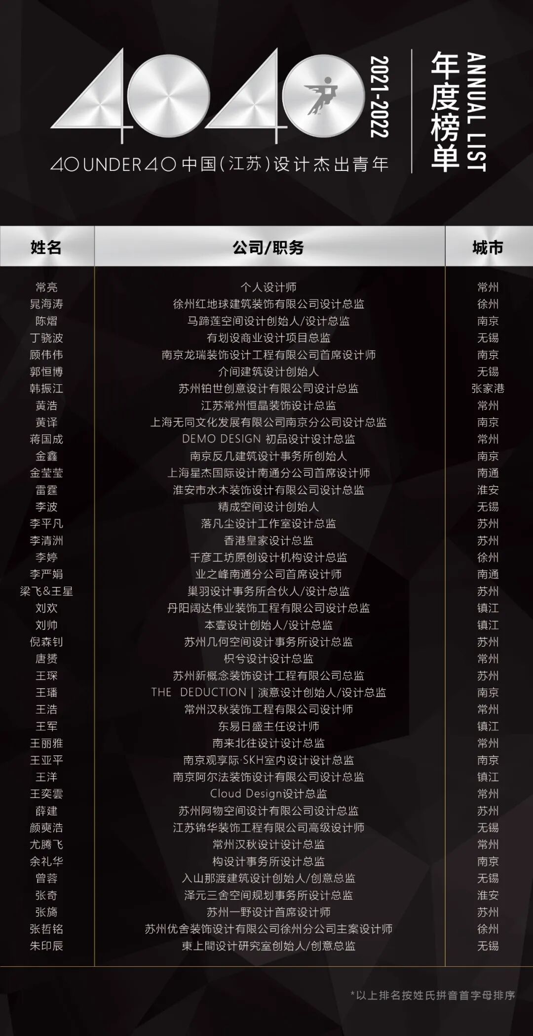 40 UNDER 40中国(江苏)设计杰出青年(2021-2022)