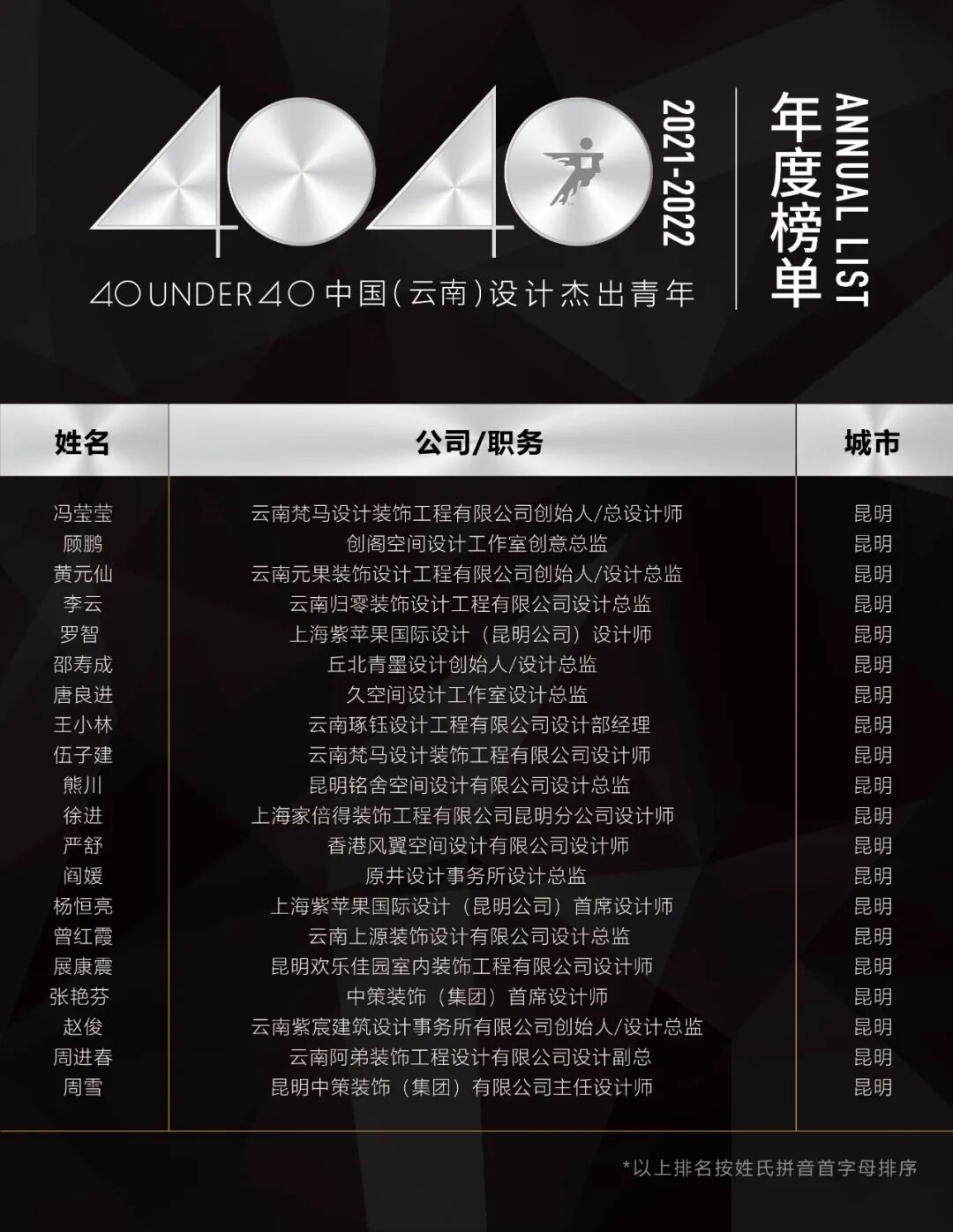 40 UNDER 40中国(云南)设计杰出青年(2021-2022)