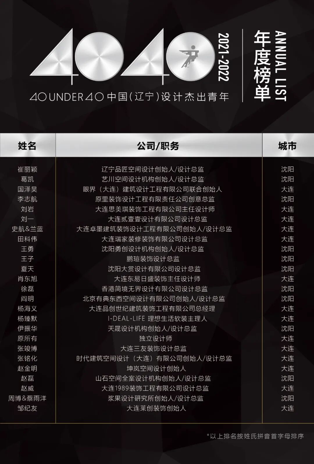 40 UNDER 40中国(辽宁)设计杰出青年(2021-2022)
