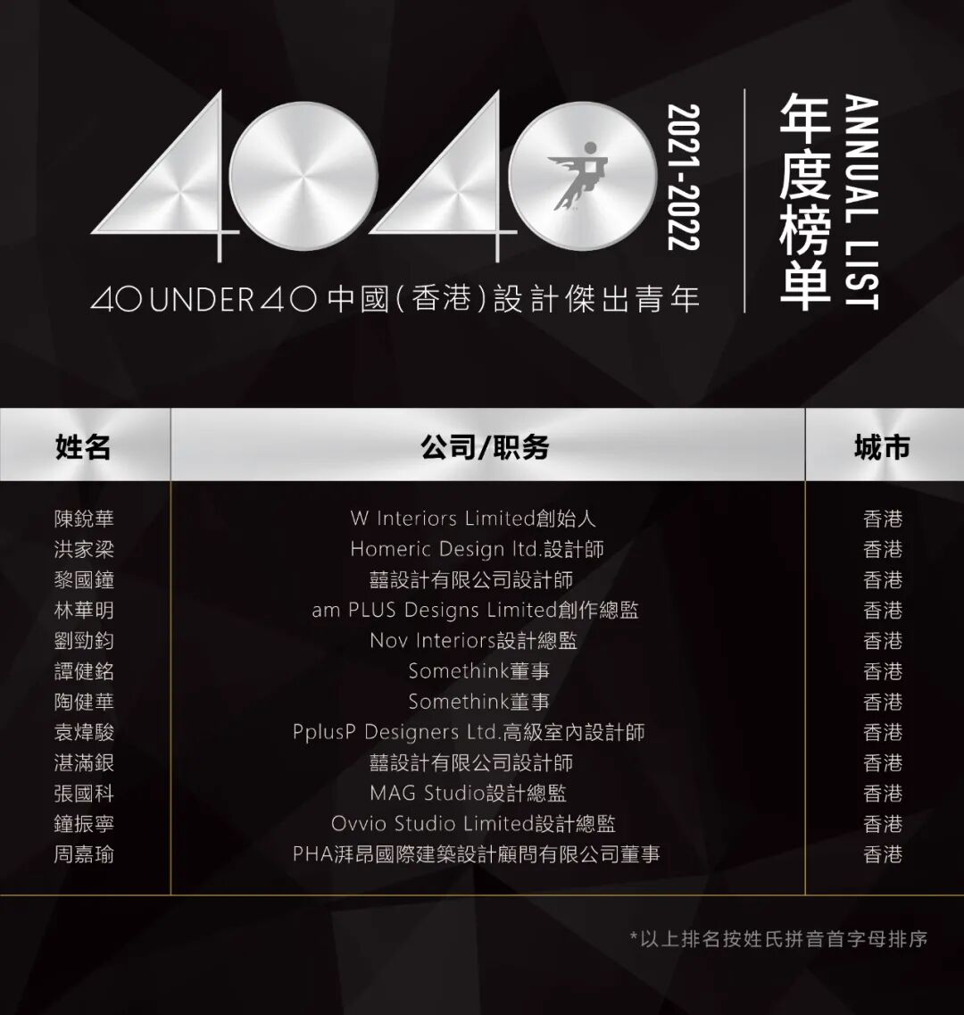 40 UNDER 40中国(香港)设计杰出青年(2021-2022)