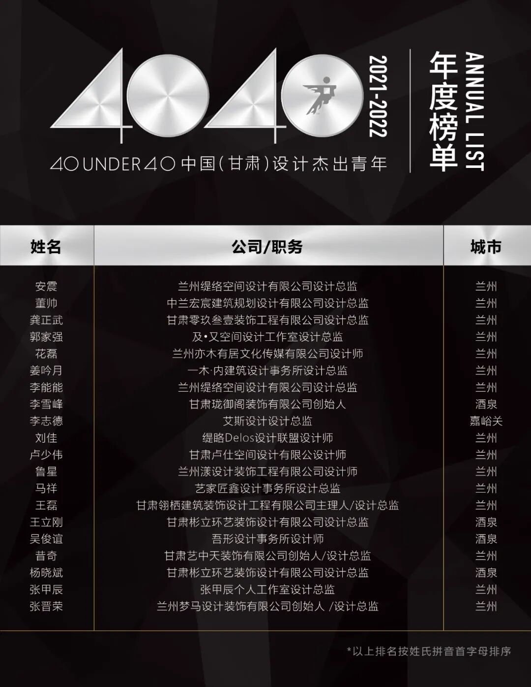 40 UNDER 40中国(甘肃)设计杰出青年(2021-2022)