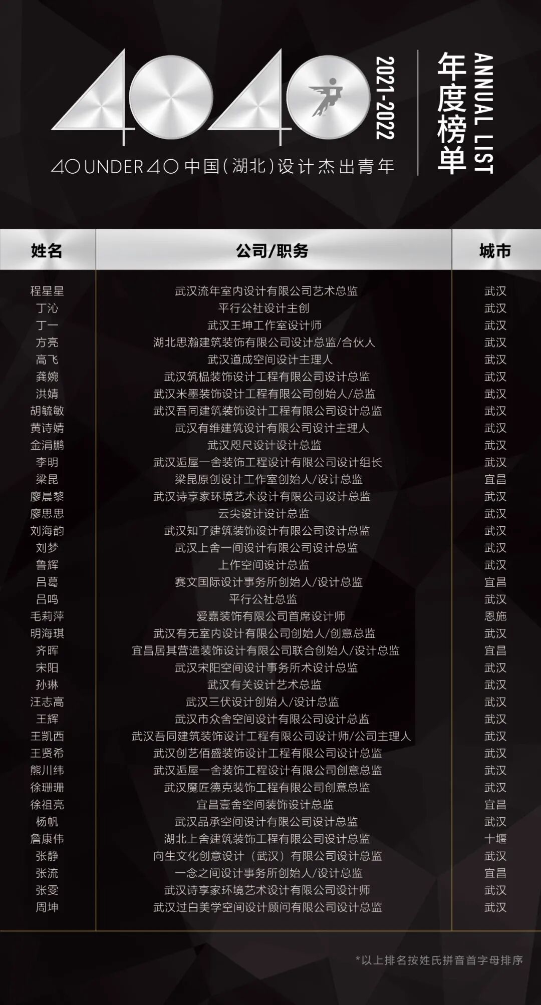 40 UNDER 40中国(湖北)设计杰出青年(2021-2022)