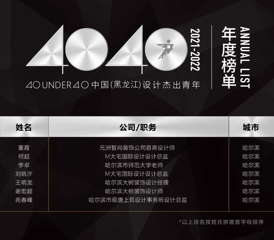40 UNDER 40中国(黑龙江)设计杰出青年(2021-2022)