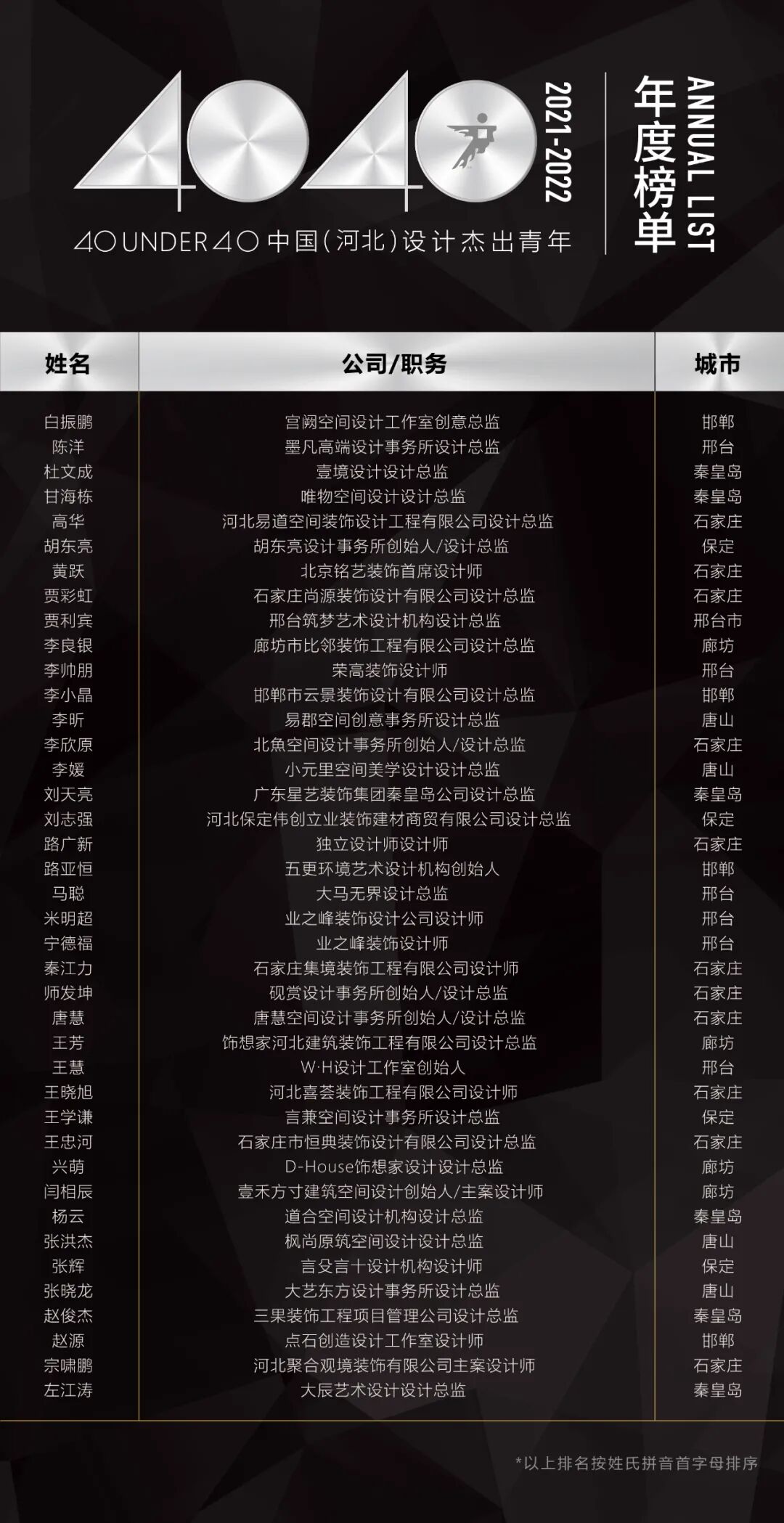 40 UNDER 40中国(河北)设计杰出青年(2021-2022)