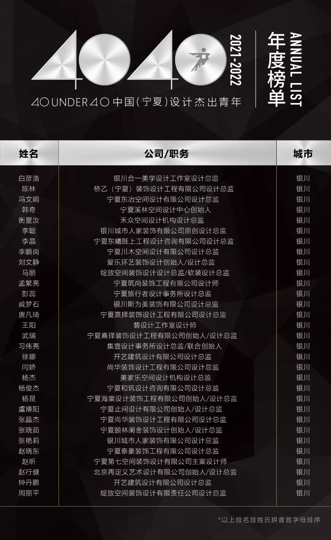 40 UNDER 40中国(宁夏)设计杰出青年(2021-2022)