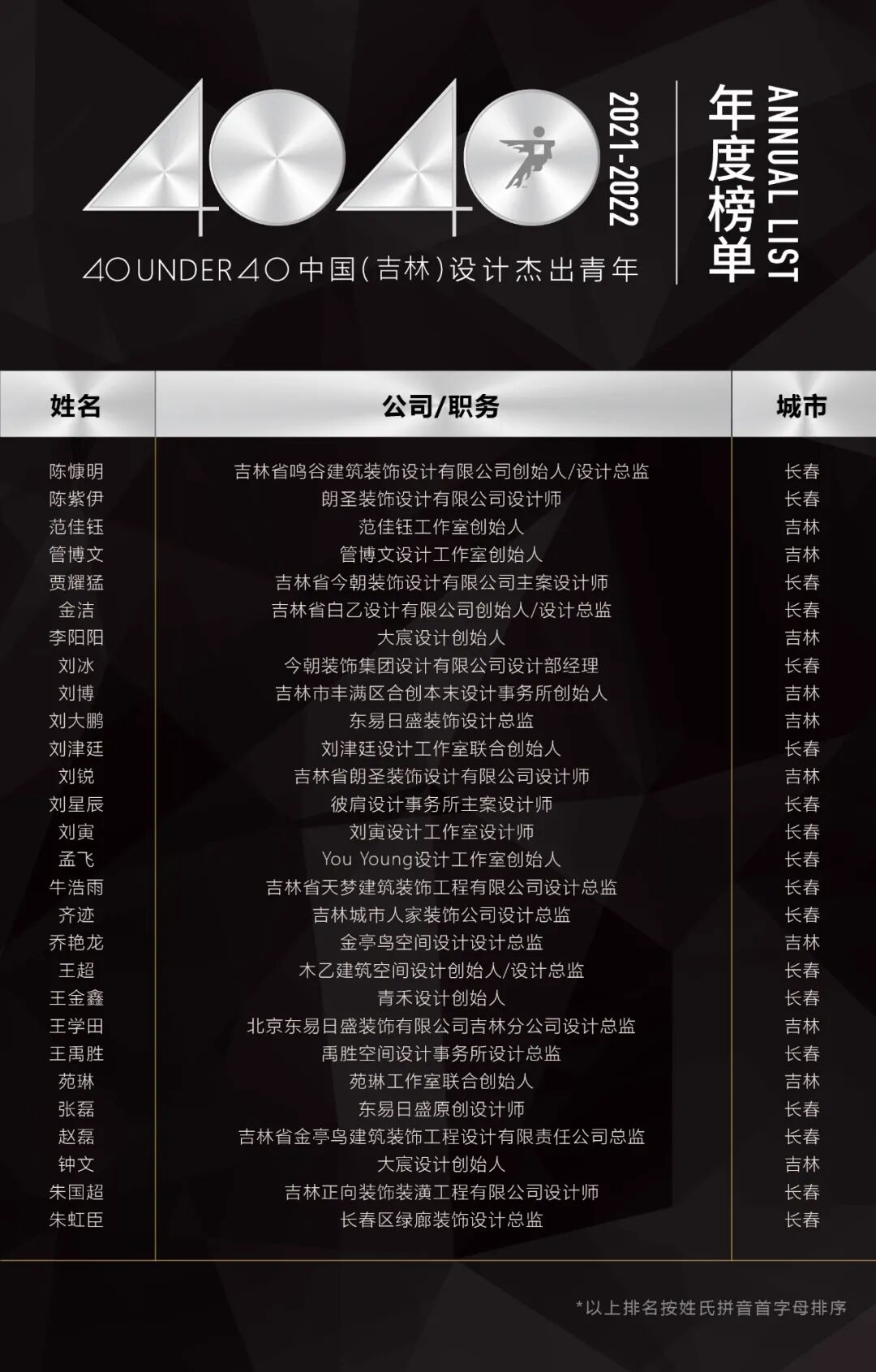 40 UNDER 40中国(吉林)设计杰出青年(2021-2022)