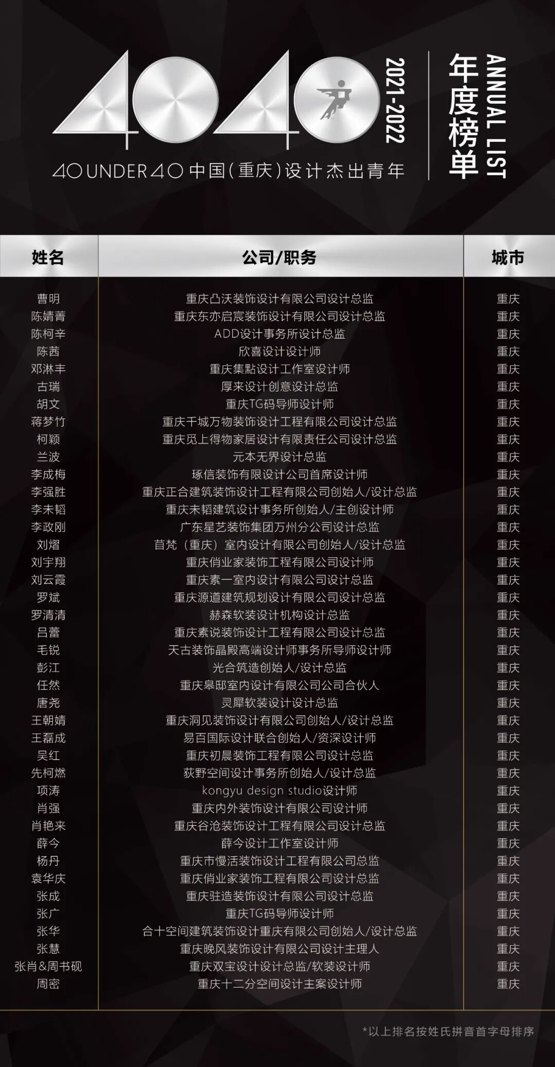 40 UNDER 40中国(重庆)设计杰出青年(2021-2022)