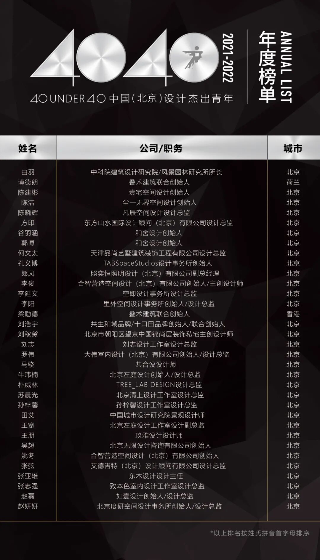 40 UNDER 40中国(北京)设计杰出青年(2021-2022)