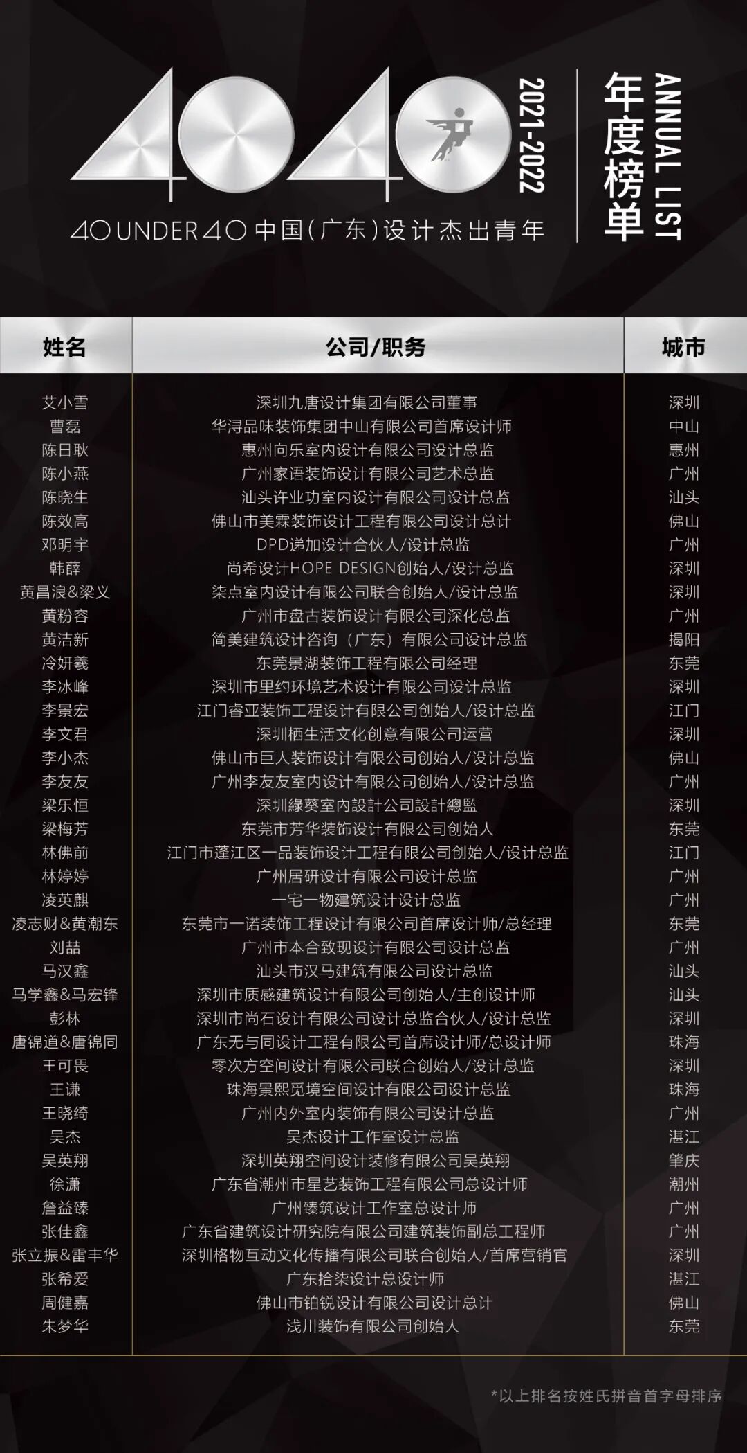40 UNDER 40中国(广东)设计杰出青年(2021-2022)