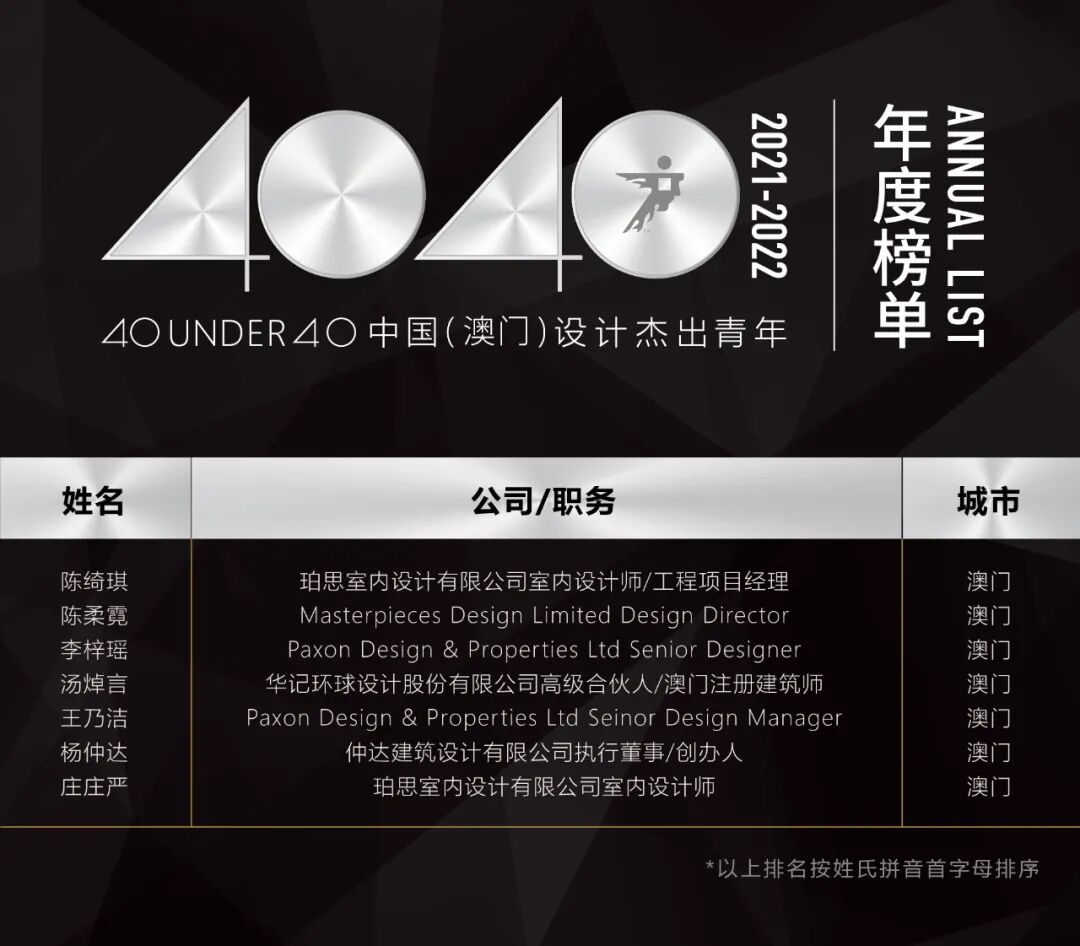 40 UNDER 40中国(澳门)设计杰出青年(2021-2022)
