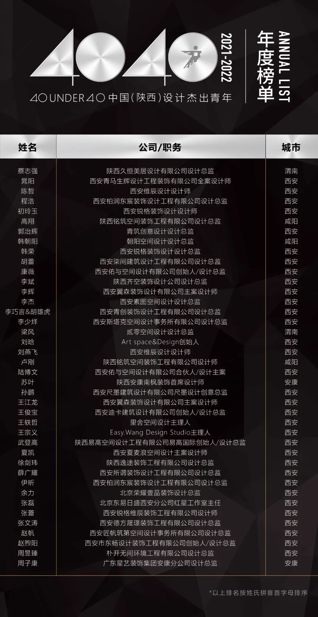 40 UNDER 40中国(陕西)设计杰出青年(2021-2022)