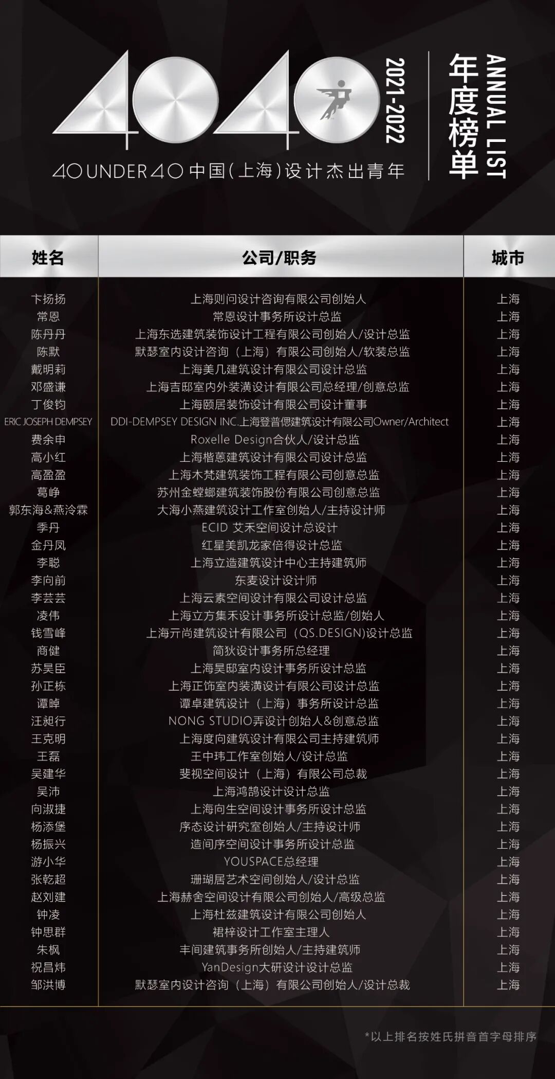 40 UNDER 40中国(上海)设计杰出青年(2021-2022)