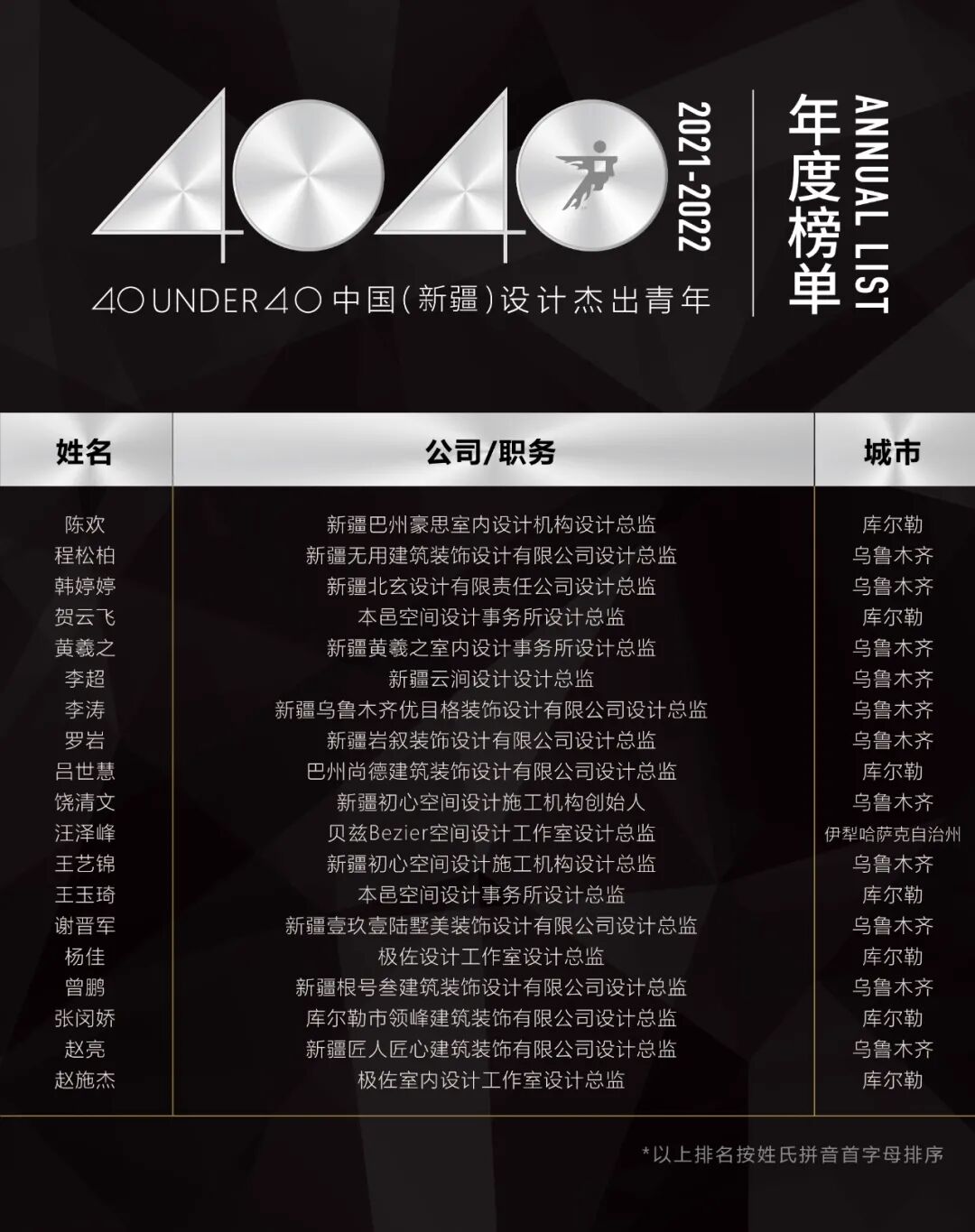 40 UNDER 40中国(新疆)设计杰出青年(2021-2022)