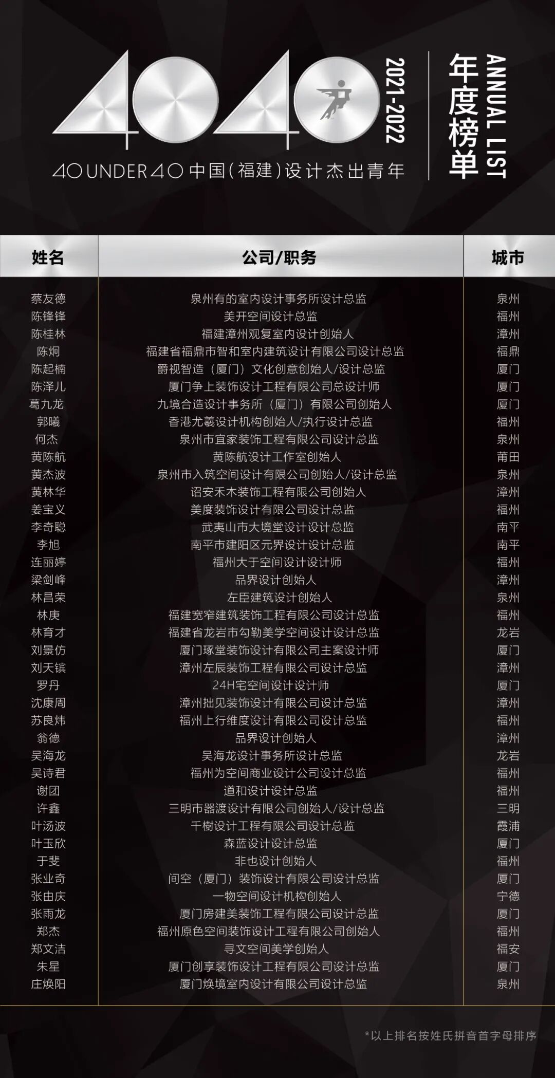 40 UNDER 40中国(福建)设计杰出青年(2021-2022)