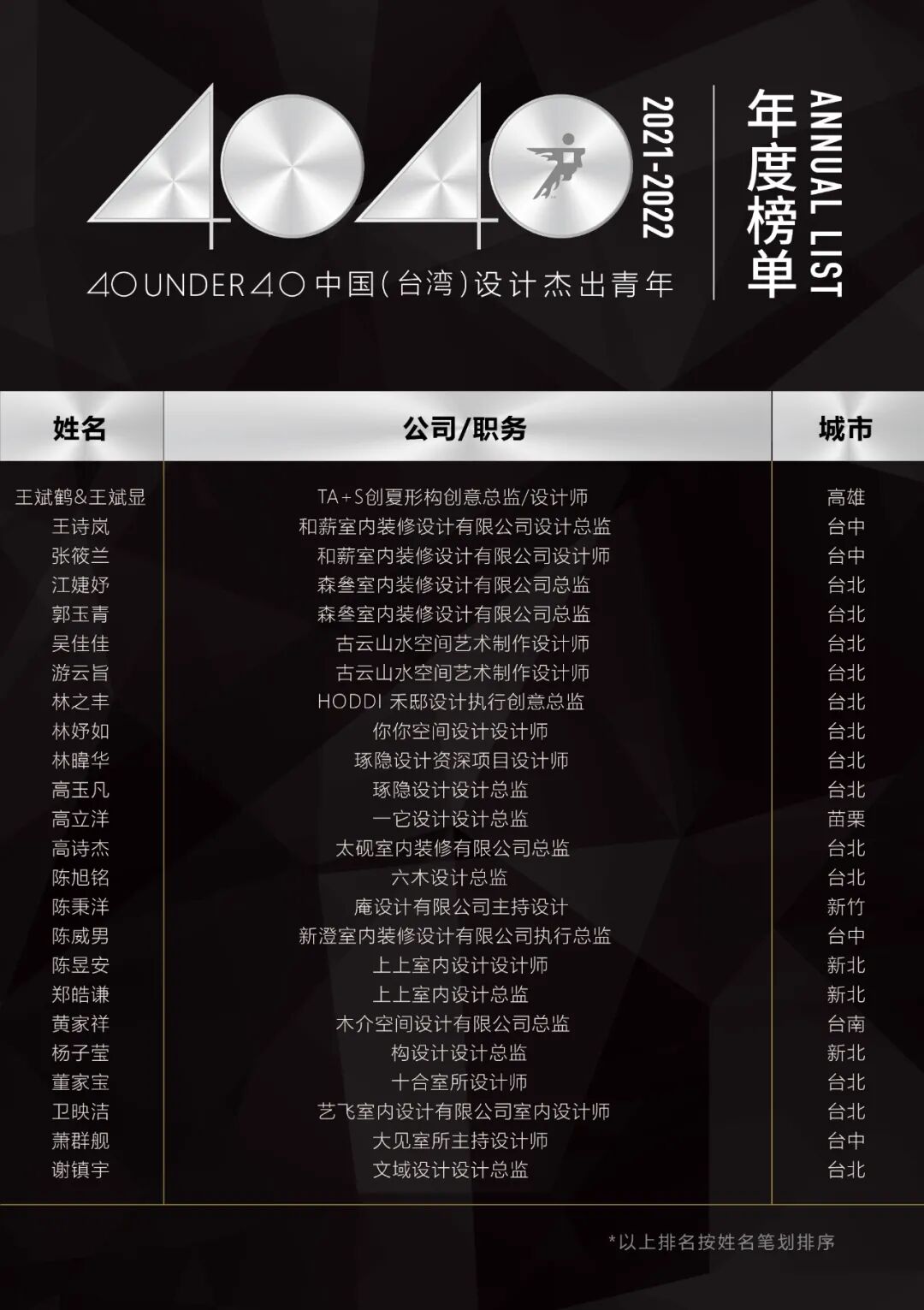 40 UNDER 40中国(台湾)设计杰出青年(2021-2022)