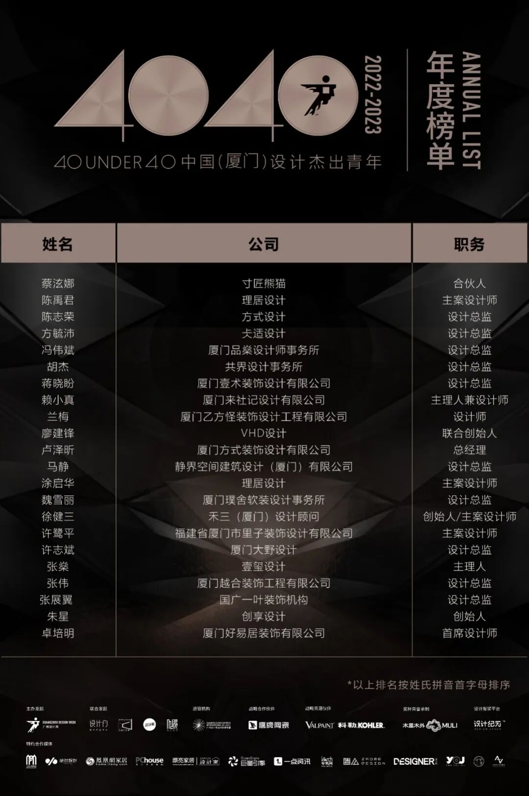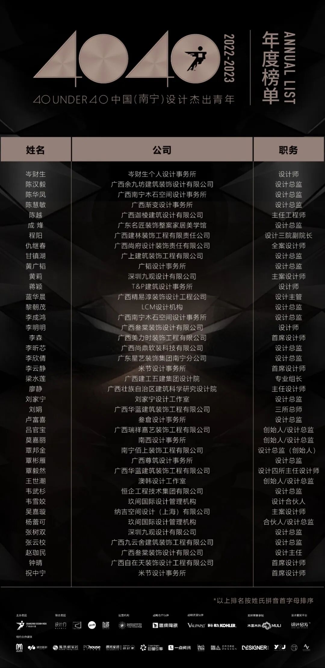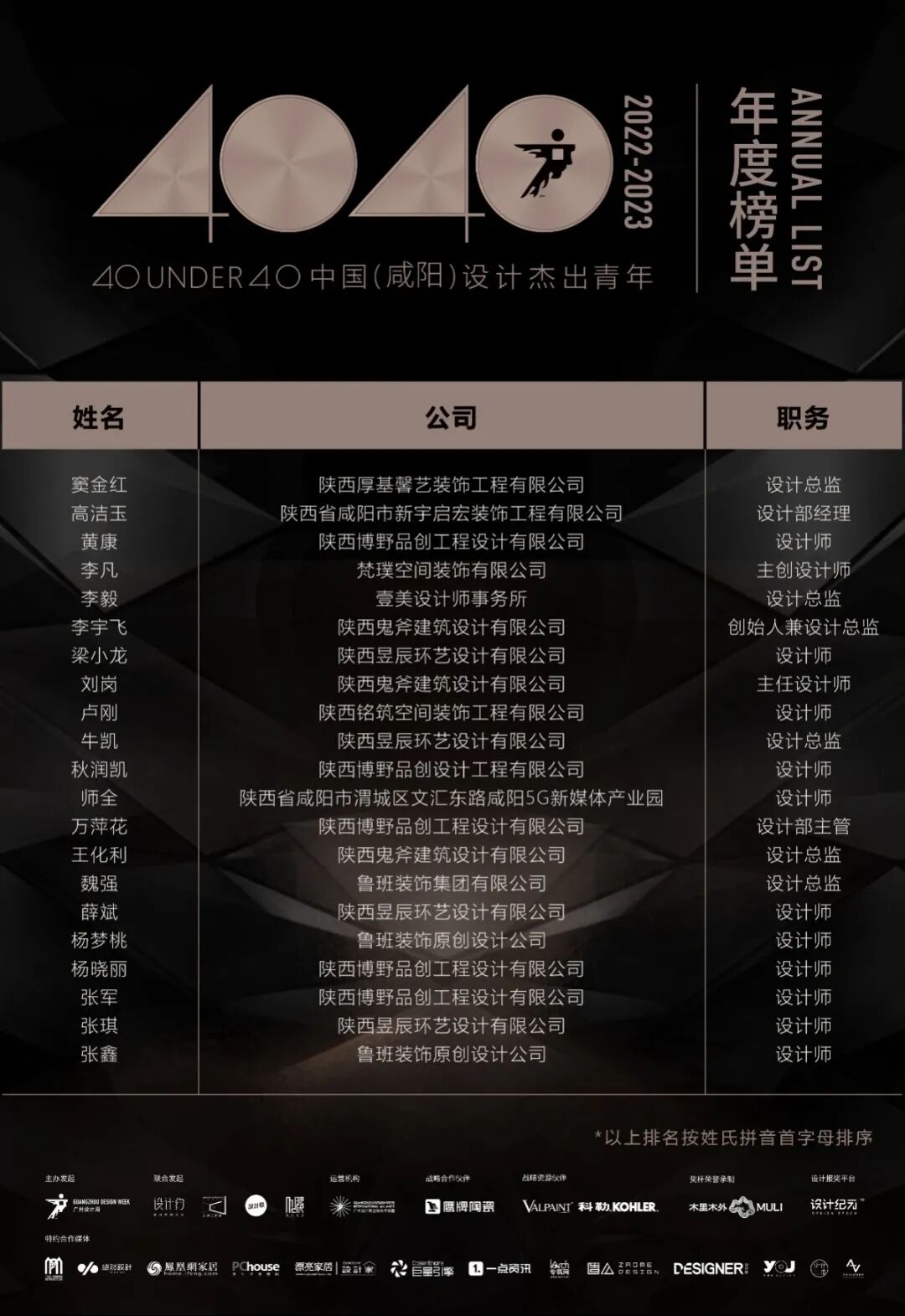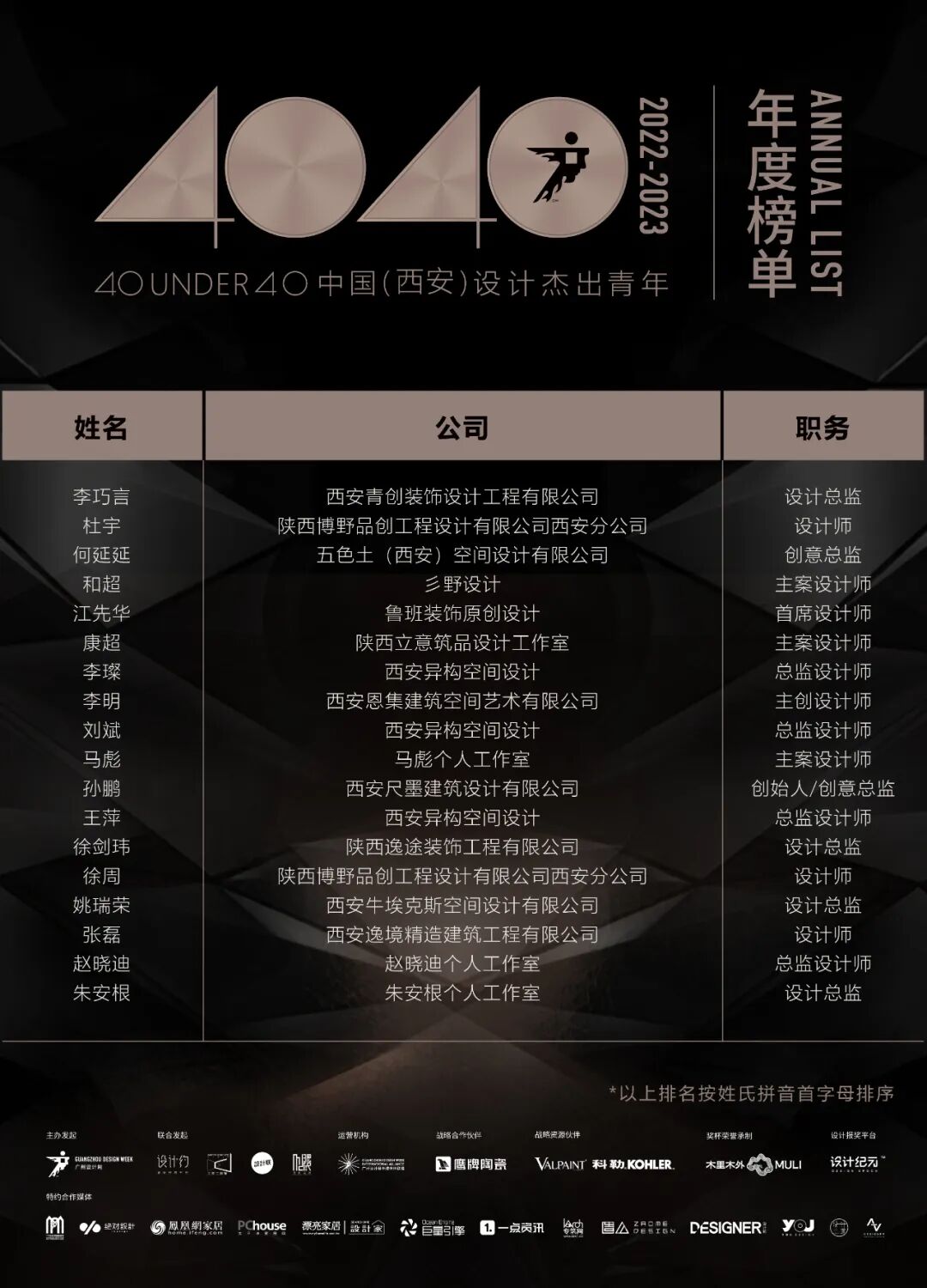祝贺以上获得40 UNDER 40中国(城市)设计杰出青年(2022—2023)的青年之光!同时,进入城市榜单的设计杰出青年将获得角逐省区榜单的机会。