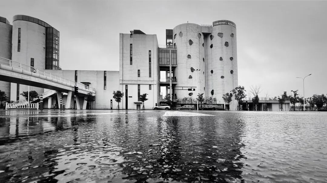 三月樱花灿烂,暖阳吻过樱树,斜照在江畔的工业风建筑白墙上,圆筒形状的建筑造型格外引人注目,移步其中更为惊艳。