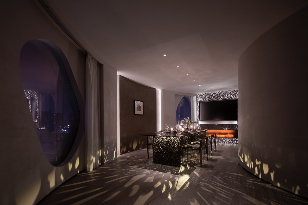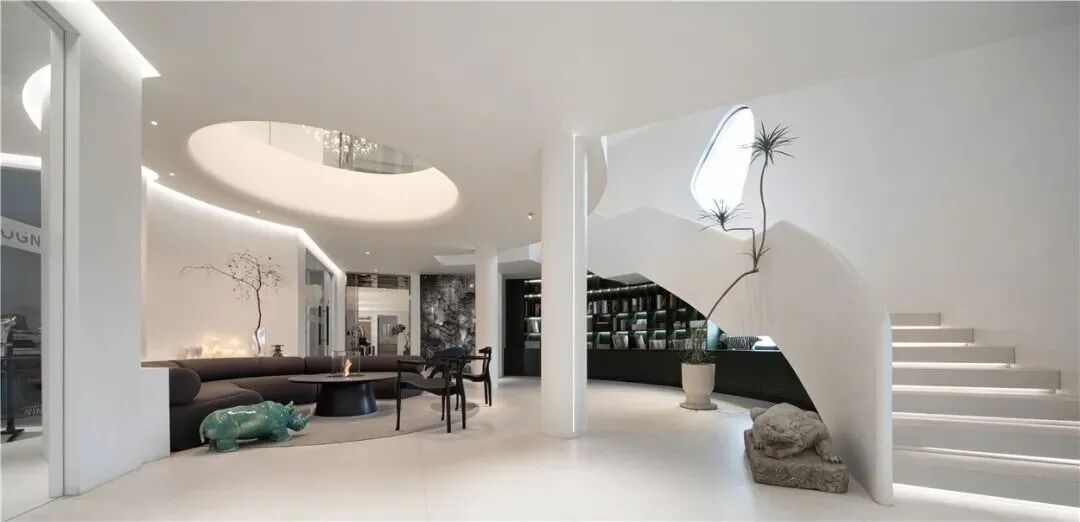东西方多元化的专业学习使他形成了独具思考的设计逻辑——重视空间的整体性,包括内部空间全景式的联系建构,以及室内空间与建筑乃至建筑环境的氛围延续,更加注重人与自然的交融,人与环境的对话。