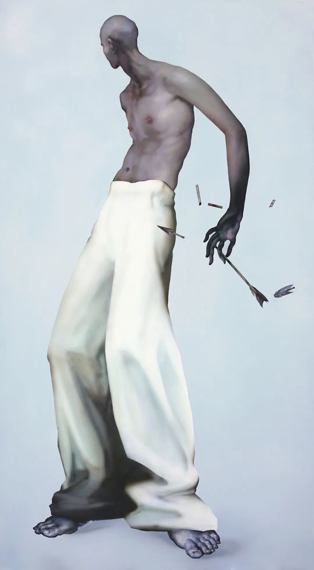 谢堃,《物理伤害》,布面丙烯,155 x 85 cm2022,图片致谢艺术家与叁拾空间
