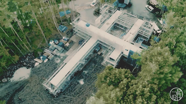 整个建筑非常前卫,由四个堆叠的走廊组成,再由一个平屋顶将其连接。该设计的灵感来源于这样的城市场景。