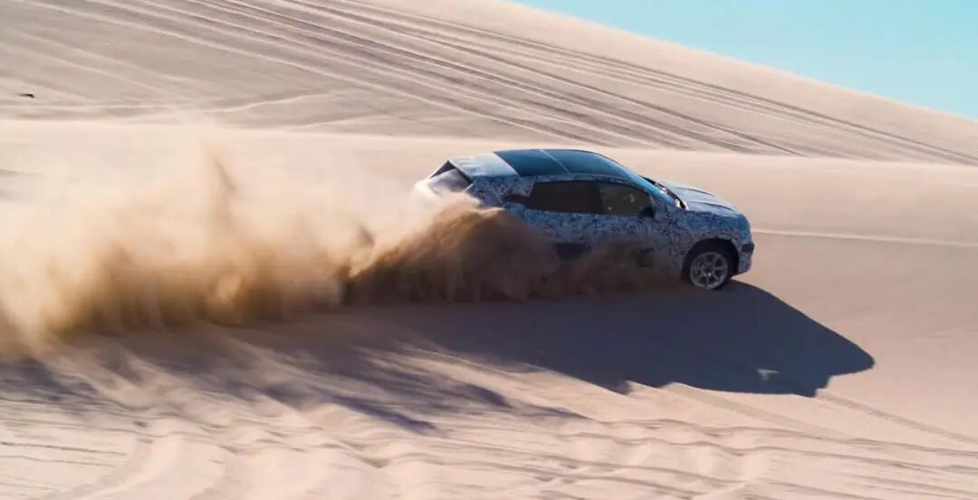 测试不仅在普通道路、树林中进行,还进行了较高难度的越野。而奔驰提供的视频中,EQS SUV伪装车正在沙滩上玩耍,展示了类似奔驰G那样的沙漠越野性能。