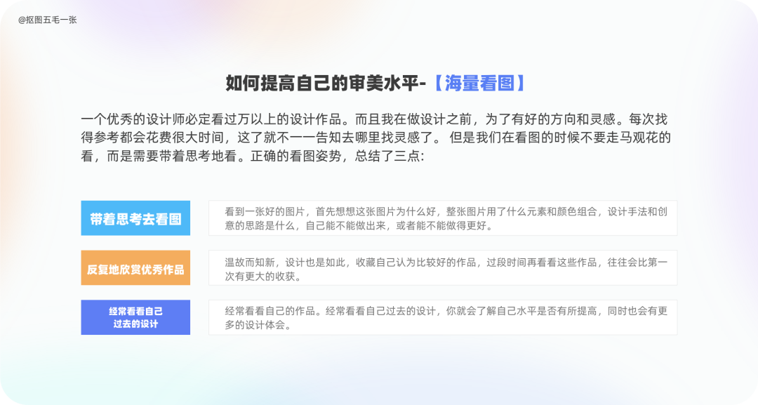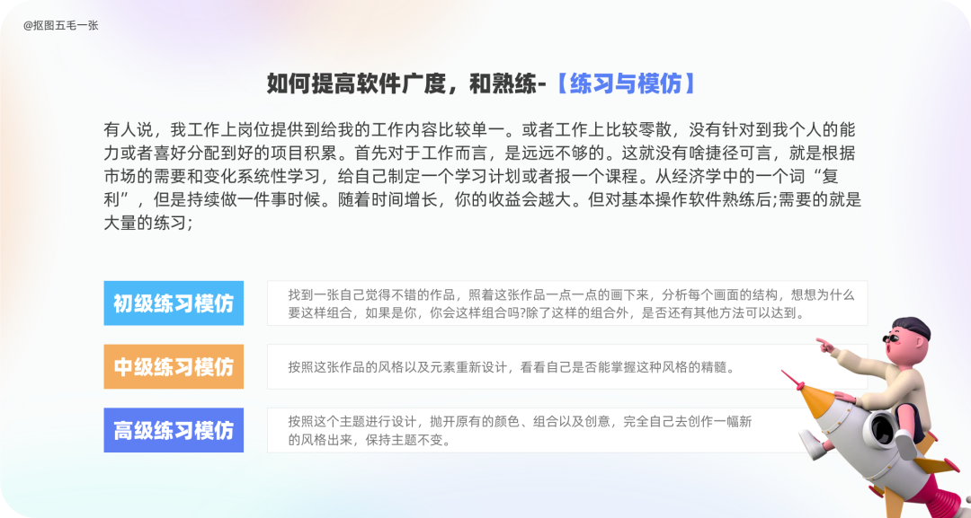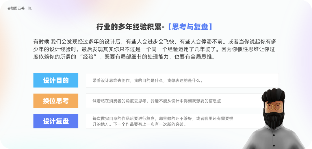 编者按 无论是刚入行还是已经入行多年的设计师,都会遇到迷茫和瓶颈期,有的感觉自己在原地踏步,有的想转行,有的觉得设计是在吃青春饭。但其实每一个职业都会经历由量变到质变的过程,做好职业规划是关键!一起来看看今天的文章,作者@站酷用户:抠图五毛一张,用自身经验跟我们分享如何做好设计师的五年规划,成为不迷茫、不焦虑的设计师!