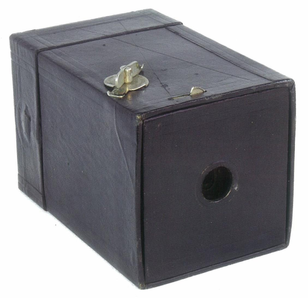 由此产生的布朗尼相机只不过是一个纸板盒,前面安装了一个镜头,但它的创新之处在于将相机简化到最低限度。机身由黄麻板制成,用木头加固,并以仿黑皮革覆盖。为数不多的控制器是镀镍的。一端是一个简单的半月形镜头,焦距为100毫米,光圈为f/14,还有一个简单的单速旋转快门。相机背面由两根金属弹簧固定,并且是可拆卸式的,以便插入新引进的日光卷轴胶片,后来被命名为117,每张2又1/4 x 2又1/4英寸(以英寸为单位制造和销售,约6 x 6厘米),可进行六次曝光。快门释放器和用于推进胶片的过片键位于相机顶部。