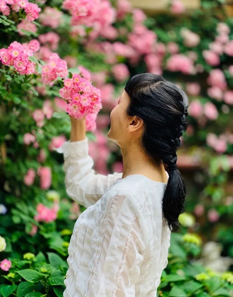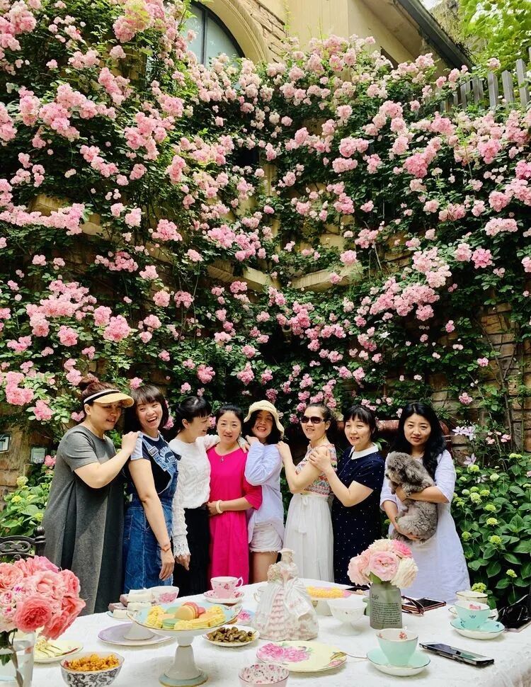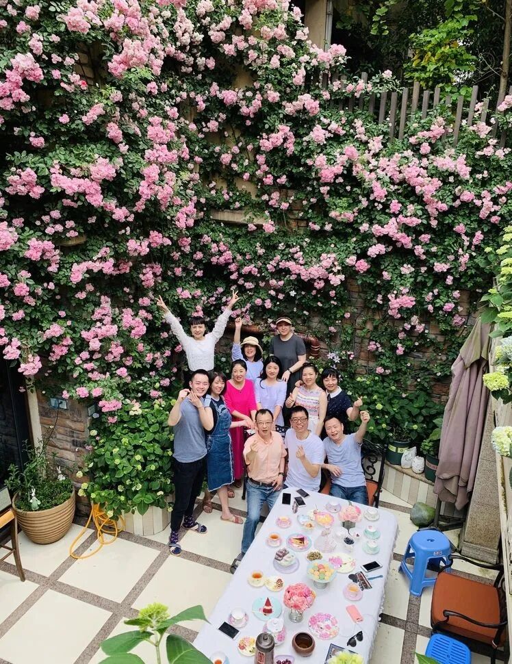 相聚的好时光,相聚在花墙前,留下美好的瞬间