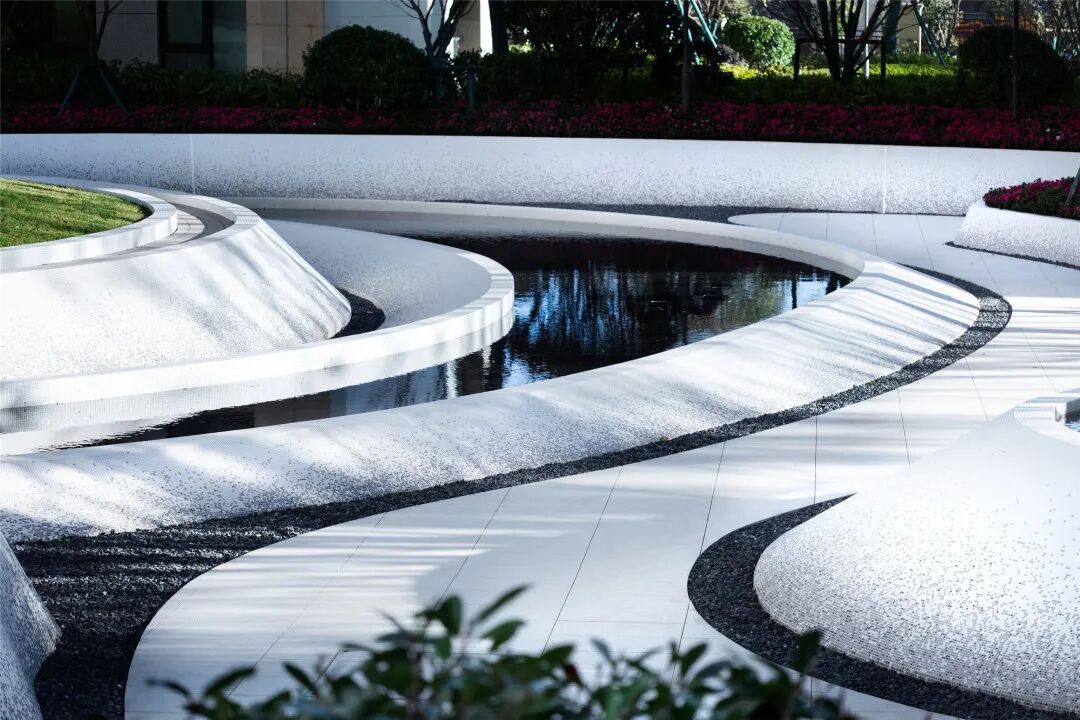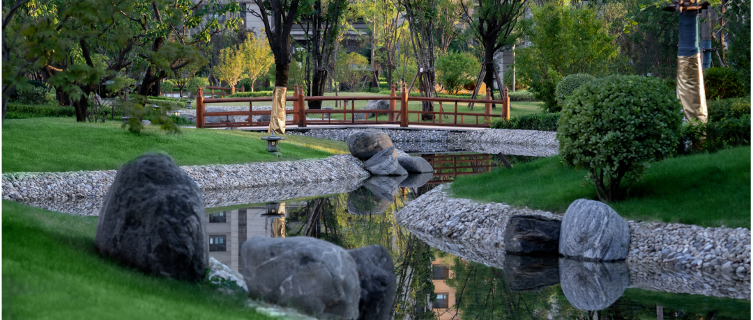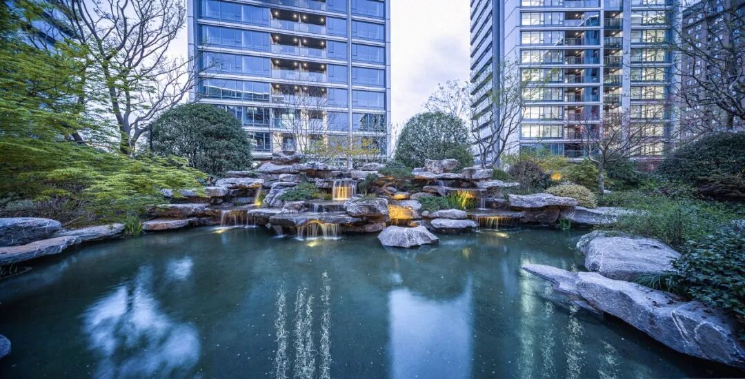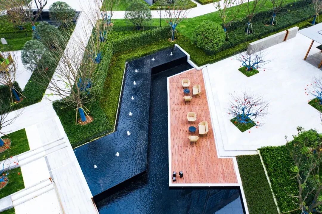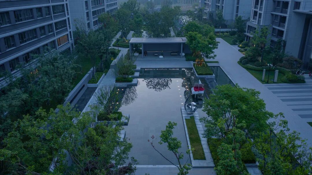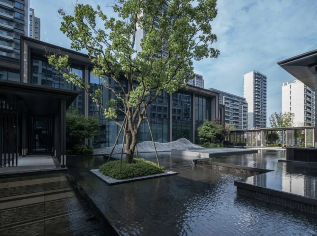 龙湖葛洲坝·皓玉府以“都市山水”为设计核心,延续杭城肌理文脉,用现代手法重新演绎传统园林。以杭州最具代表性的山水苑园林——郭庄为蓝本,引山水入园,营造出“居山水、观天地”的空间意境以及大隐隐于市的生活场景,让山水画卷与都市生活融为一体。