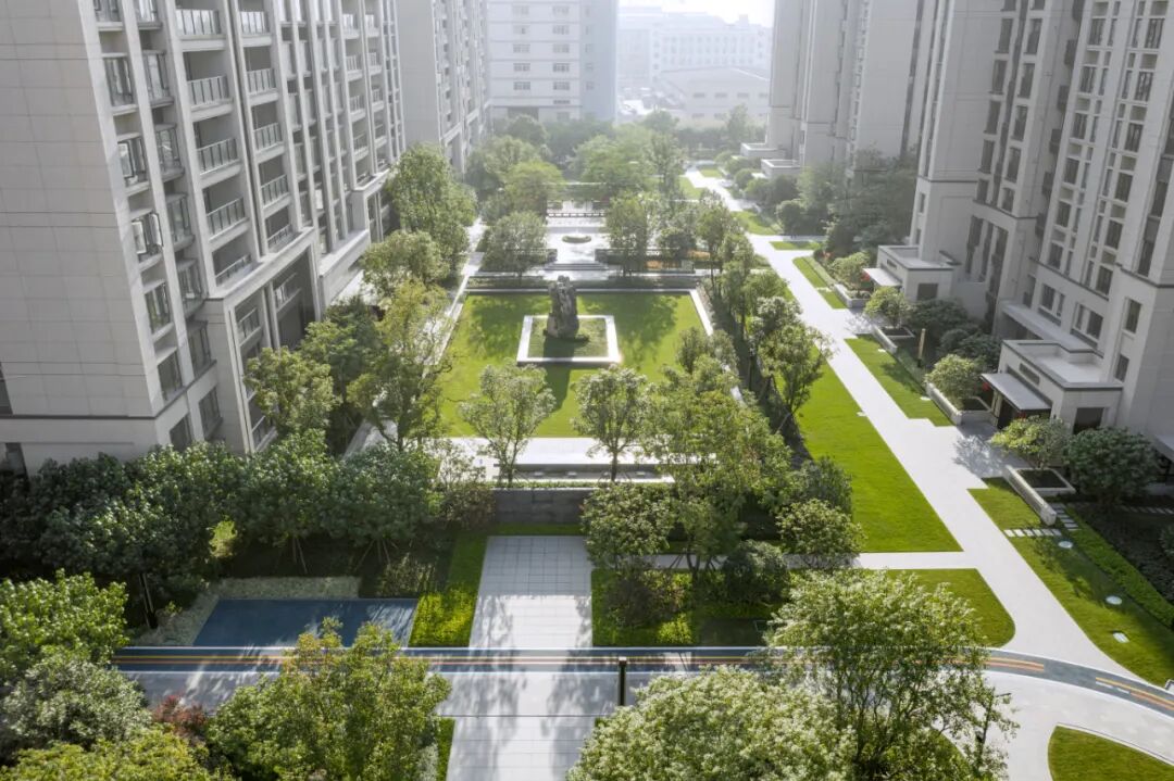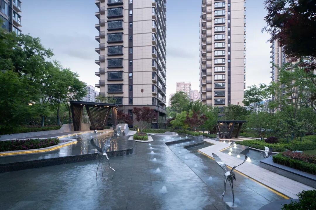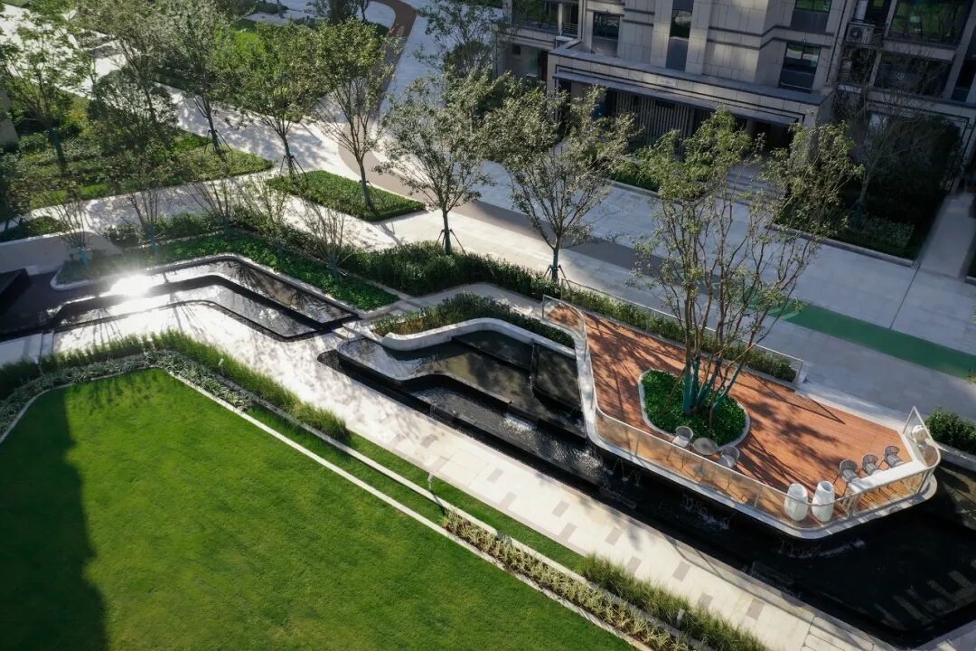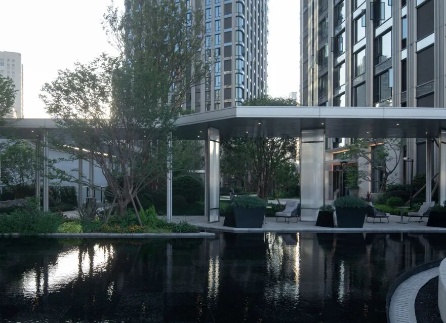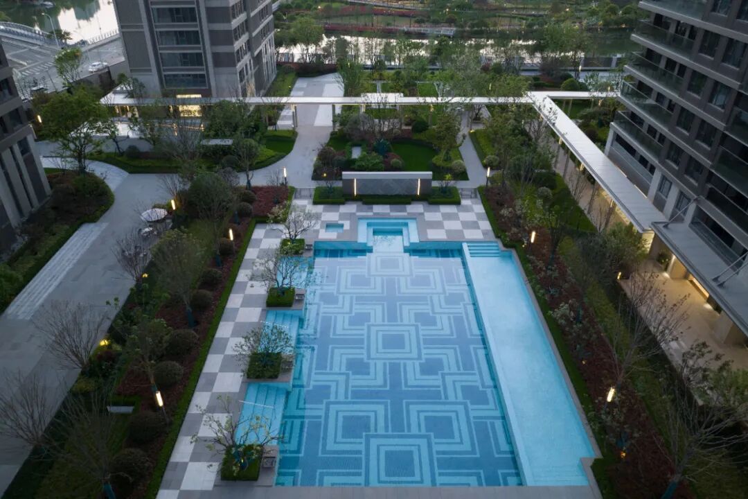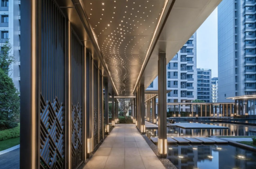 龙湖葛洲坝·皓玉府以“都市山水”为设计核心,延续杭城肌理文脉,用现代手法重新演绎传统园林。以杭州最具代表性的山水苑园林——郭庄为蓝本,引山水入园,营造出“居山水、观天地”的空间意境以及大隐隐于市的生活场景,让山水画卷与都市生活融为一体。