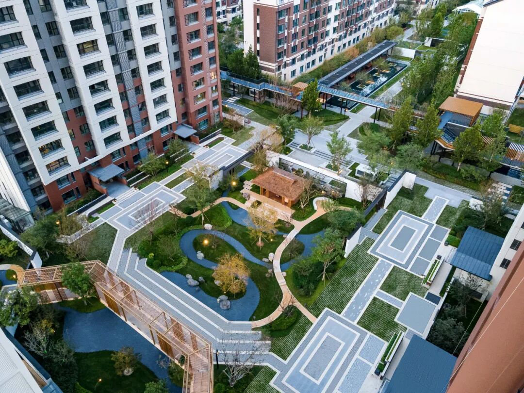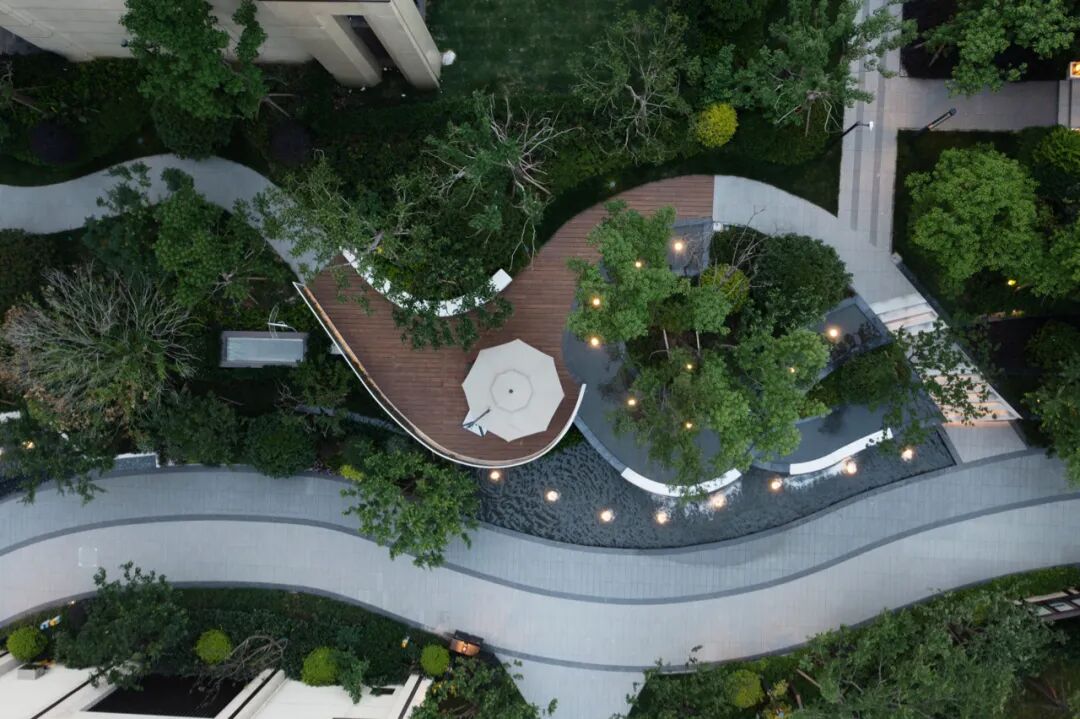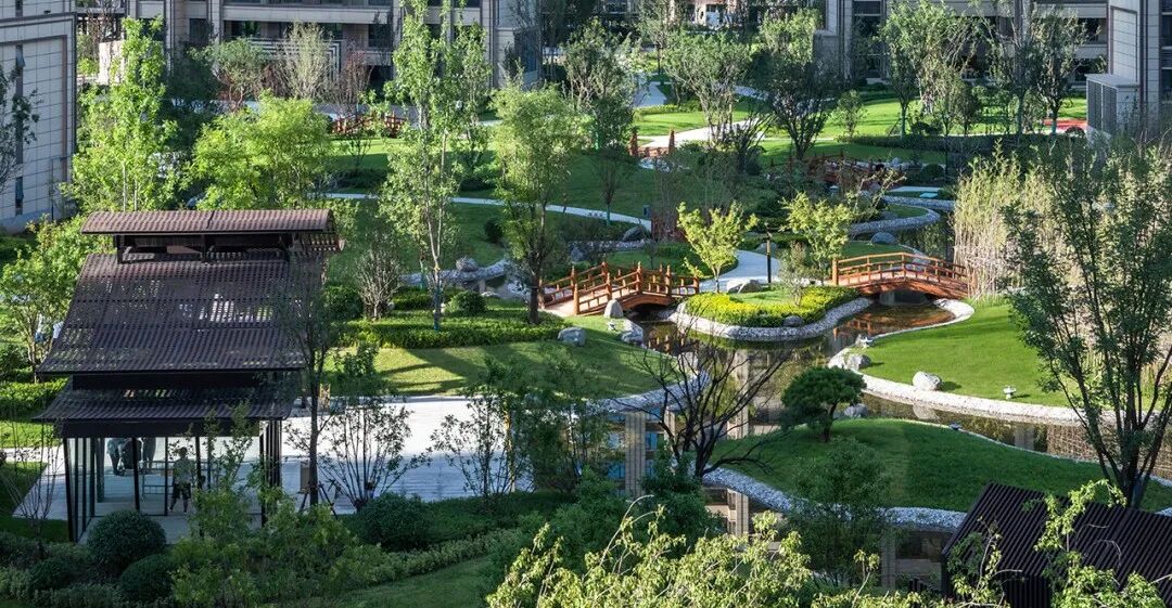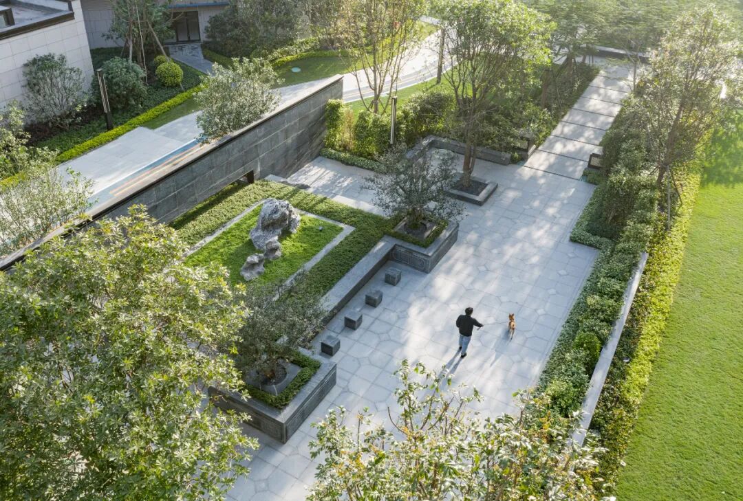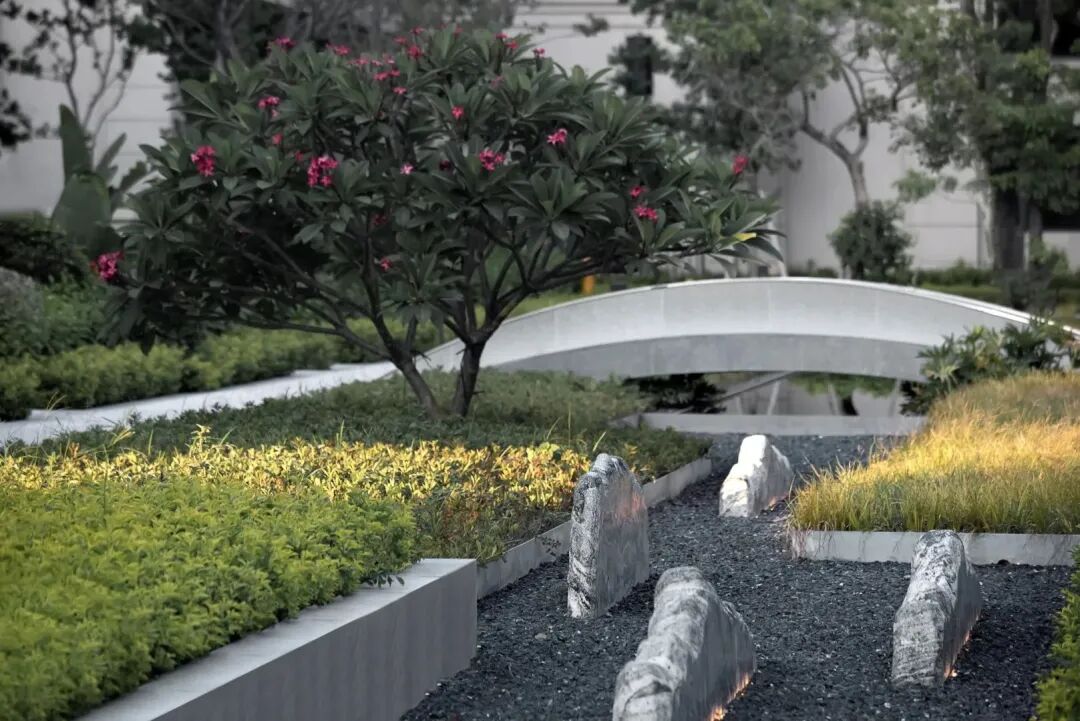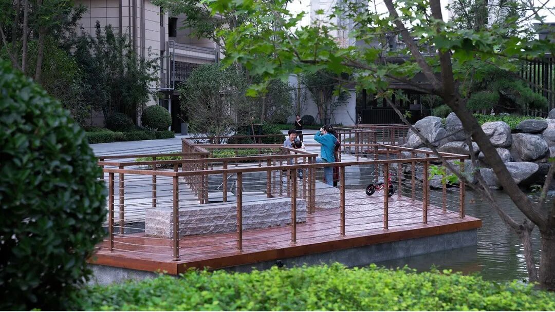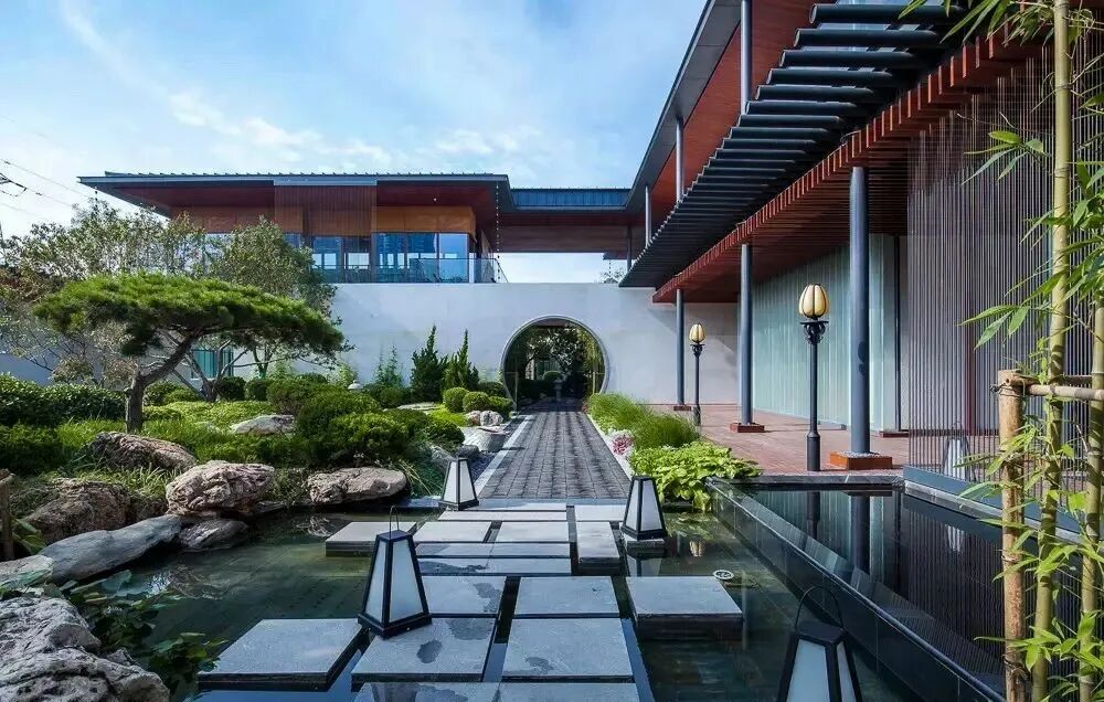 禅和审美,理想之家。设计师深谙东方山水绘画艺术,将疏、密、曲、直的空间符号一揽入园,构成了层次丰富的空间排序。