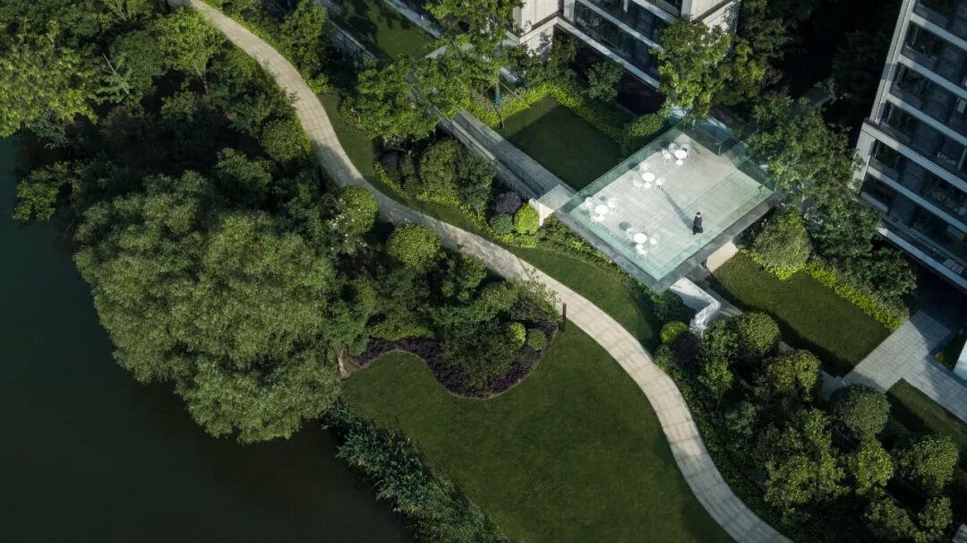 阅江府位于长沙市湘江新区的雅河之畔,拥有西邻洋湖生态公园、东通湘江的独特水景资源,设计师希望通过本案将绿意与水景引入场地,再塑曼妙的自然之境。
