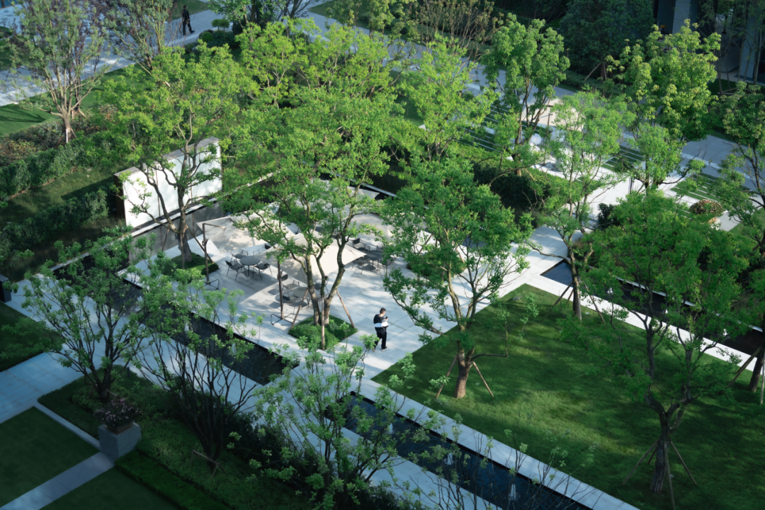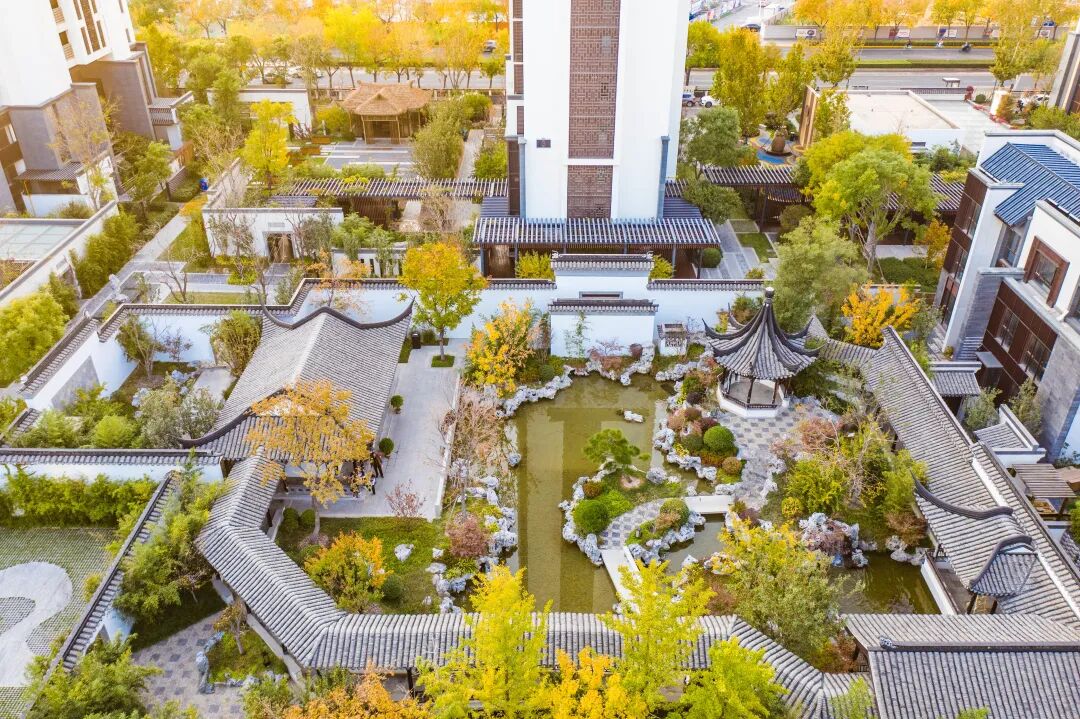 格调林泉承接格调竹境景观的中式文化脉络,呈现东方庭院的温婉气质。不同于常规项目的中轴线布局,林泉的布局像苏州园林,庭园之间环环相扣,相互融合,又别有洞天,展现出一幅流动的视觉盛宴。