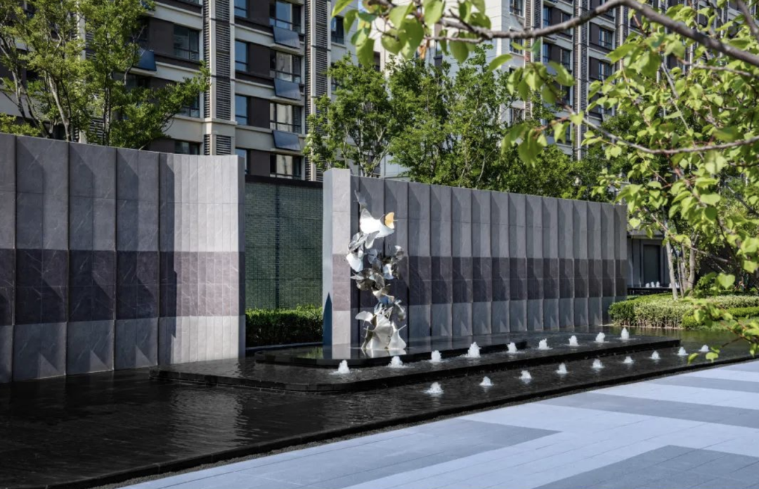 项目结合建筑手法来营造艺术灵动的现代人居景观,设计提取建筑的元素,将古典繁杂的雕饰经过简化,与现代的材质结合,呈现出古典而简约的新风貌,并将怀古的浪漫情怀与现代人对生活的需求相结合,兼具端庄典雅和现代时尚。