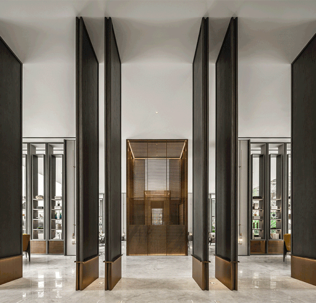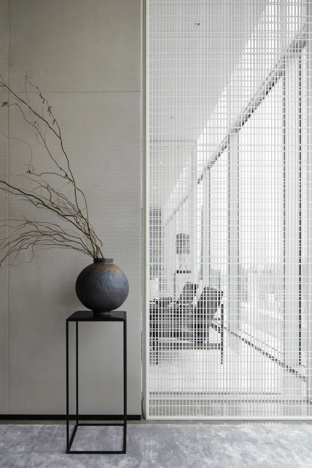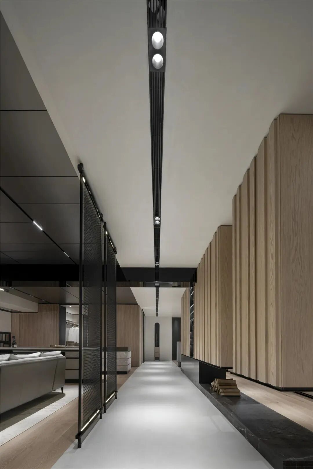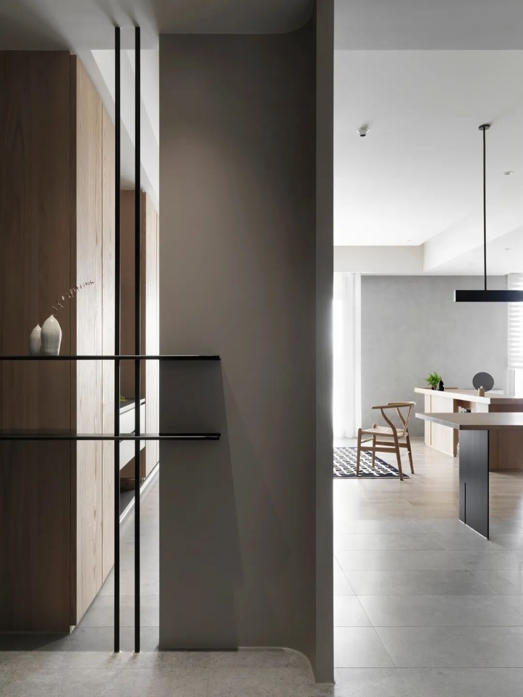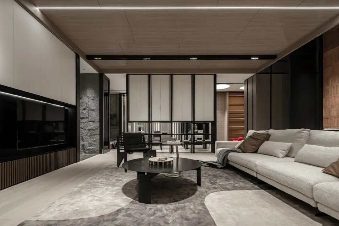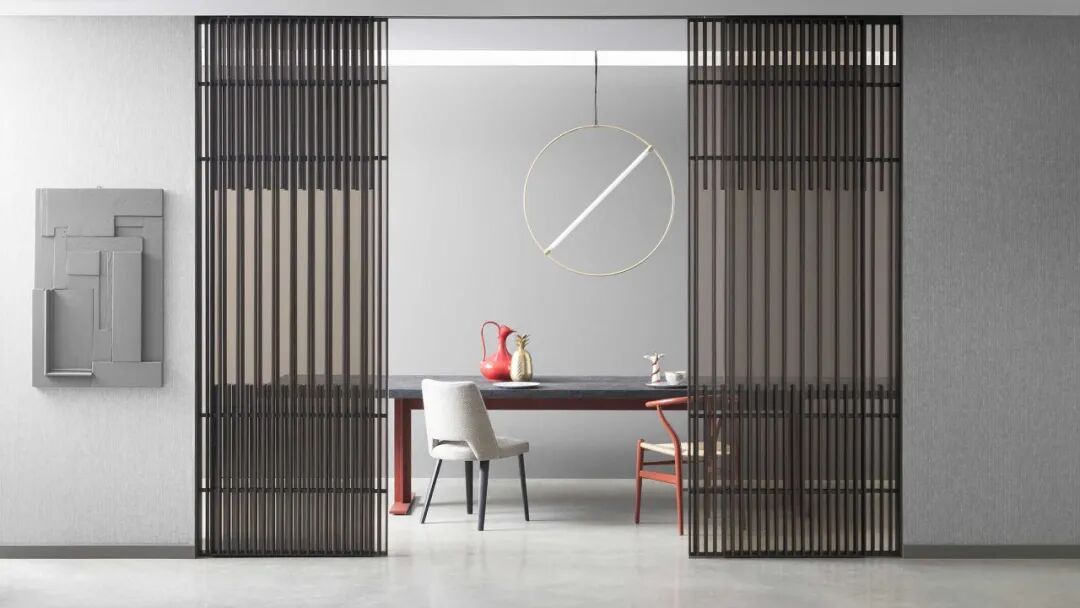 唐老师对于隔断的喜爱甚至超过对实木的运用,款式不限,材质多样。下图为唐老师为德国柏丽nobilia沈阳概念店项目的设计,轻盈通透的隔断,赋予空间独特的气质和层次美。