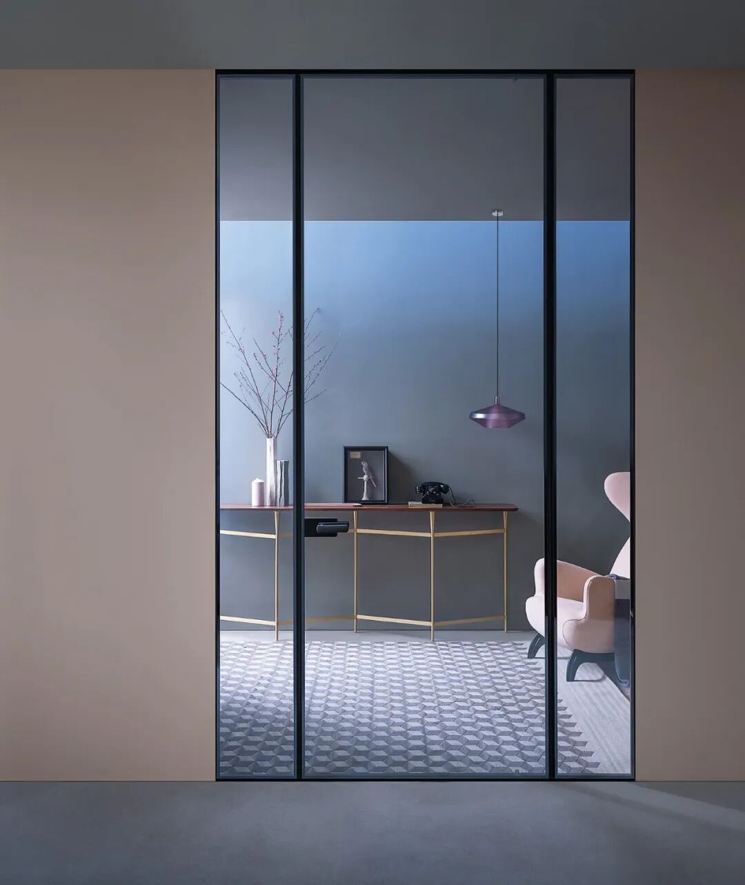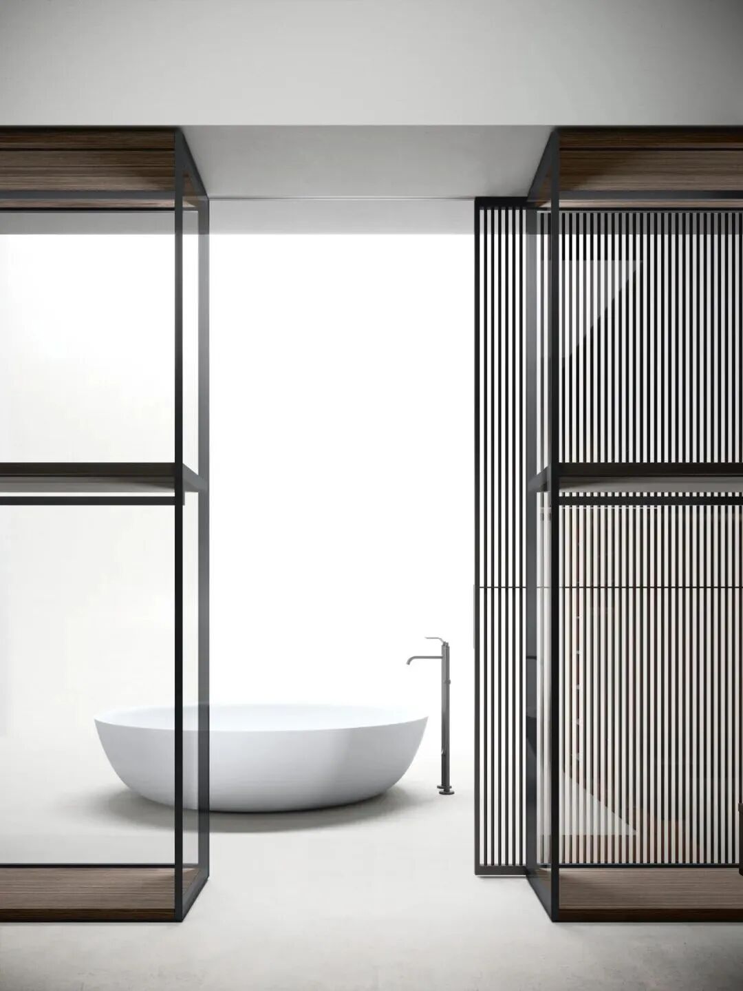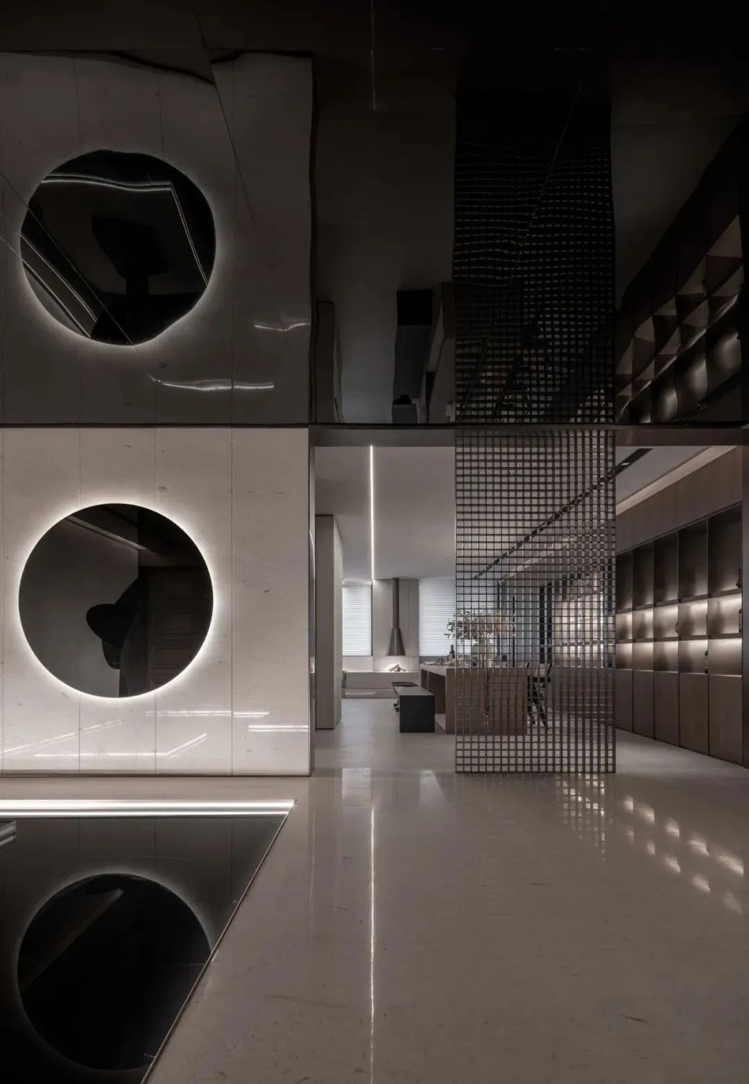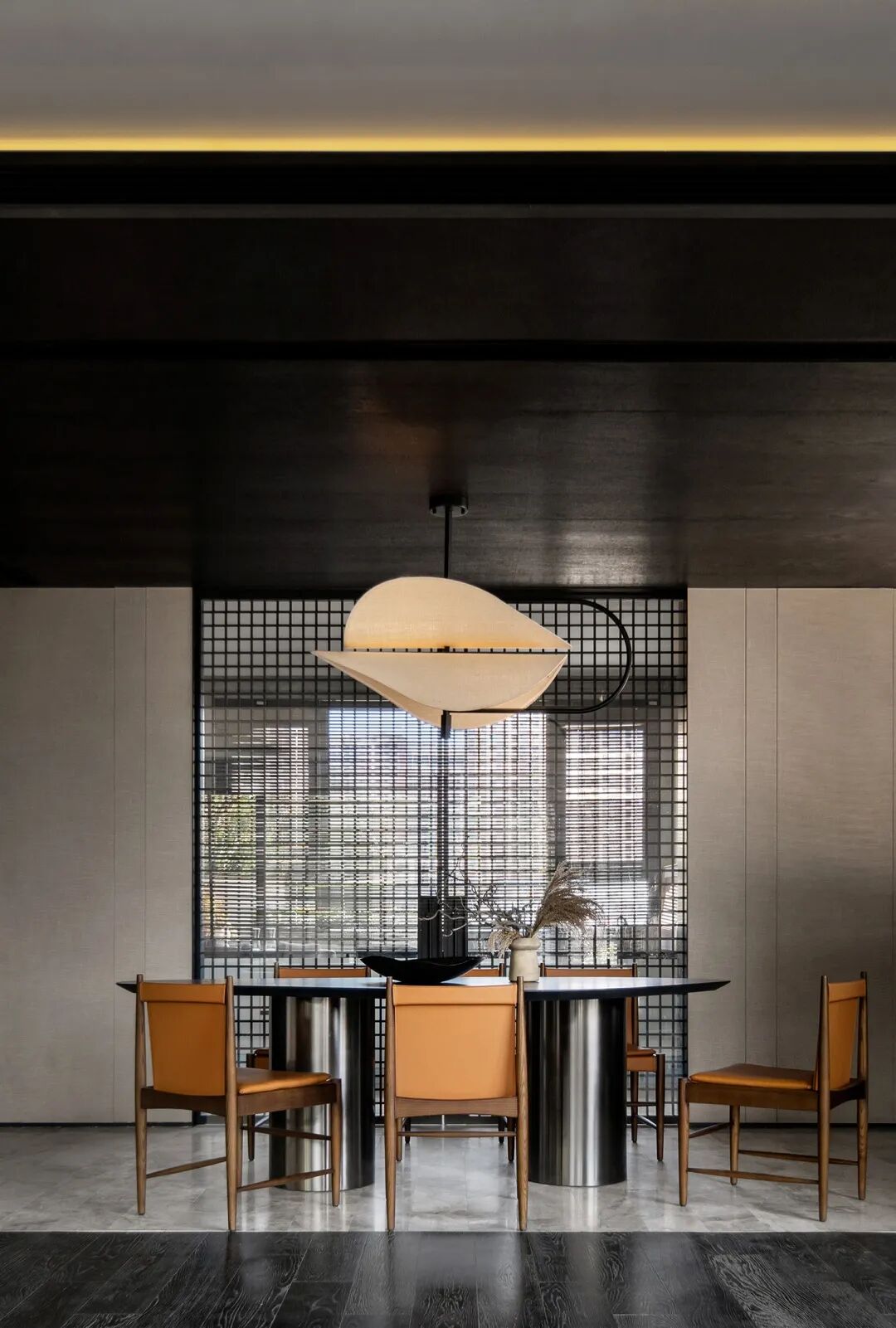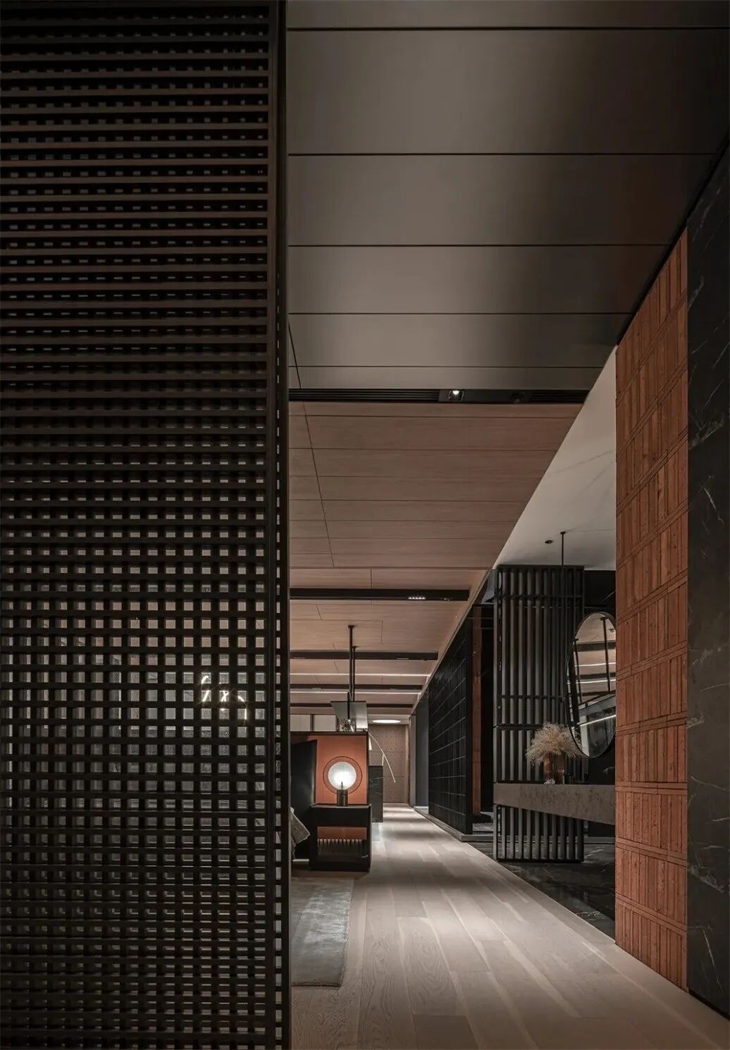 唐老师对于隔断的喜爱甚至超过对实木的运用,款式不限,材质多样。下图为唐老师为德国柏丽nobilia沈阳概念店项目的设计,轻盈通透的隔断,赋予空间独特的气质和层次美。
