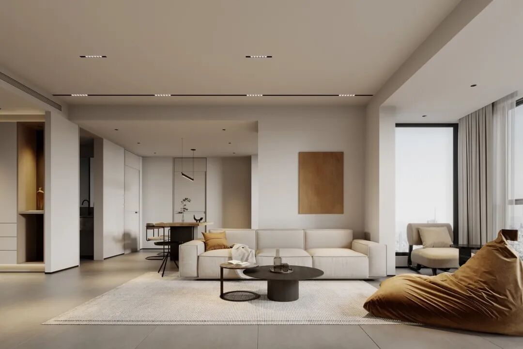 这几年极简风,侘寂风的不断流行,与墙面质感一致,和谐统一的墙体隔断,也是一种不错的选择,可以是结构承重墙,也可以用石膏板来砌筑,硅藻泥,涂料或者壁纸壁布作为饰面,会带给整个家温馨。