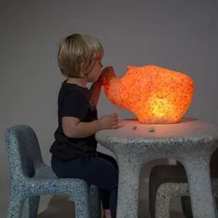 一般呈现单色或多色混合。通过温度和工艺控制,塑料饮料瓶盖混合的时候可实现不同的美感,色彩丰富,质感坚固。可通过板材、热塑、注塑等方式用于家具、家居用品、装置等。