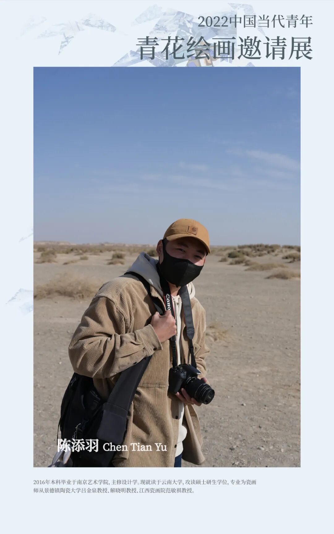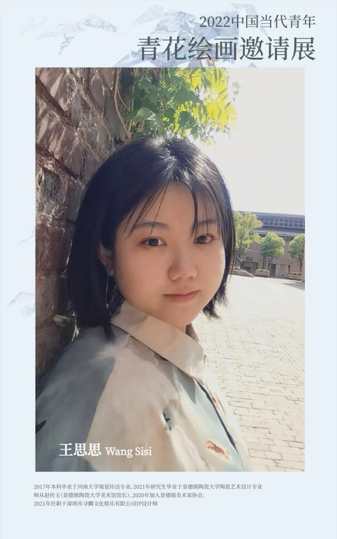 2016年本科毕业于南京艺术学院,主修设计学。现就读于云南大学,攻读硕士研生学位,专业为瓷画。师从景德镇陶瓷大学吕金泉教授、解晓明教授、江西瓷画院范敏祺教授。