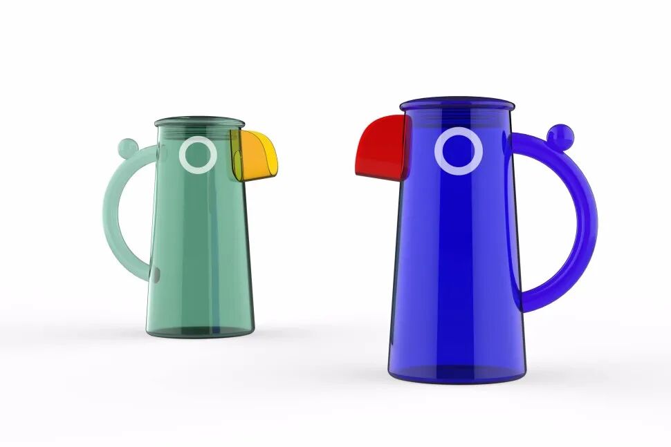 鹦鹉嘴的仿生设计让产品形态更有趣,也让出水更加流畅,让倒水的过程充满趣味性。把手上的小球设计,使用时拇指刚好可以卡住,非常容易抓握。